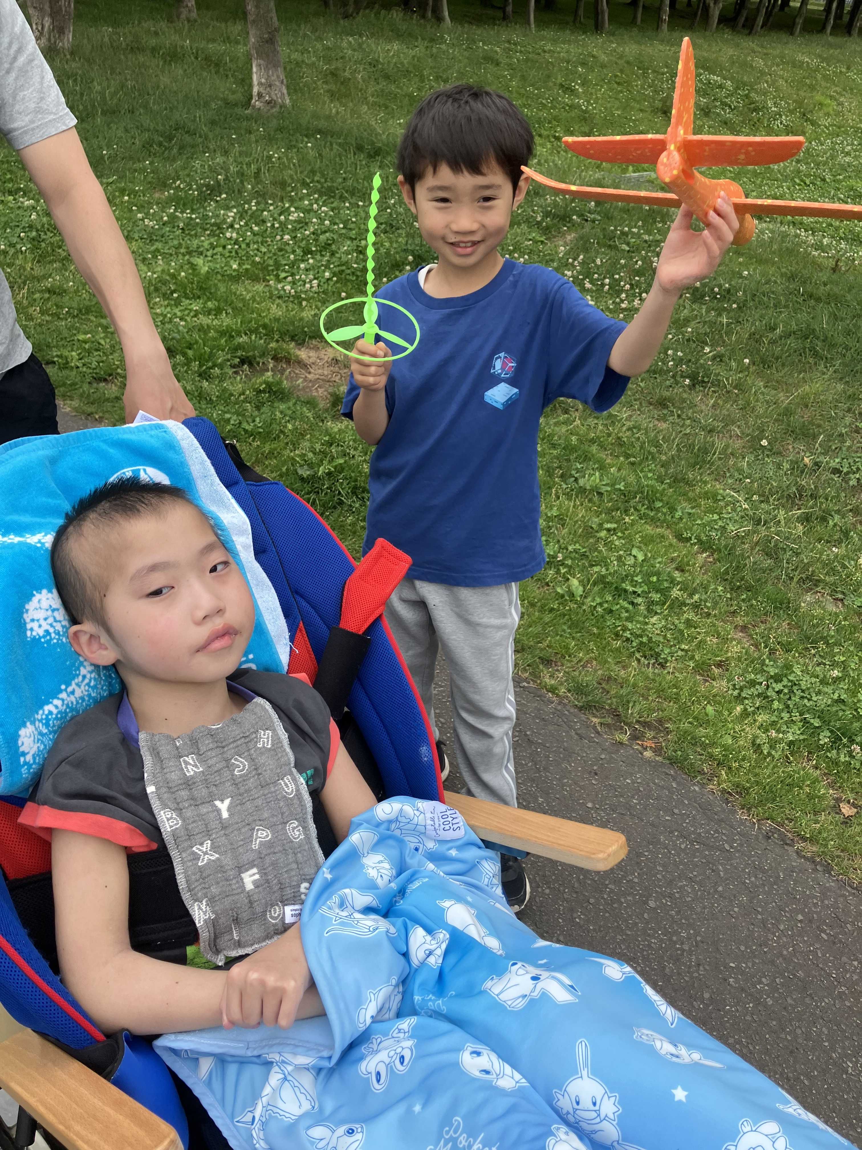 ~10歳長男🐻(小5)~昨日は、久しぶりに家族みんなで公園へ朝散歩に行きました☺️朝8時に出発して、10時に訪問看護師さんが来てくれるので、それまでに帰る!というスケジュールで行動します😄涼しくてお散歩日和でしたね👍朝は人も少ないので遊具で遊んだり、長男🐻はシャボン玉🫧で次男🐒は飛び道具で遊んだりしました😊次男🐒飛ばしたおもちゃを追いかけて走るので、気づいたら汗だくになってました😅40分くらいで長男🐻が「帰りたい」アピールをするので帰ります 笑久しぶりにみんなでお散歩できて楽しかったです😄また来ようね🤗