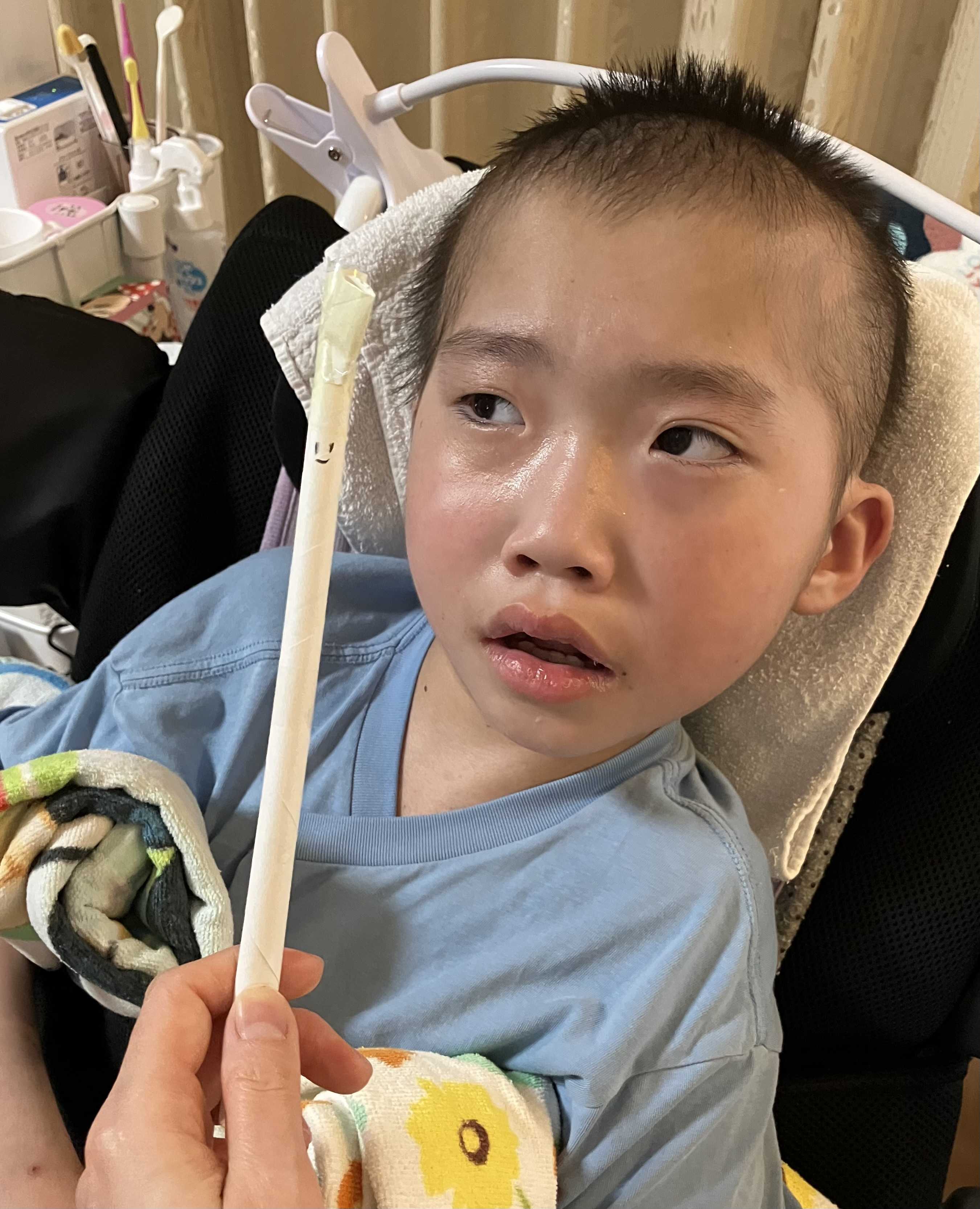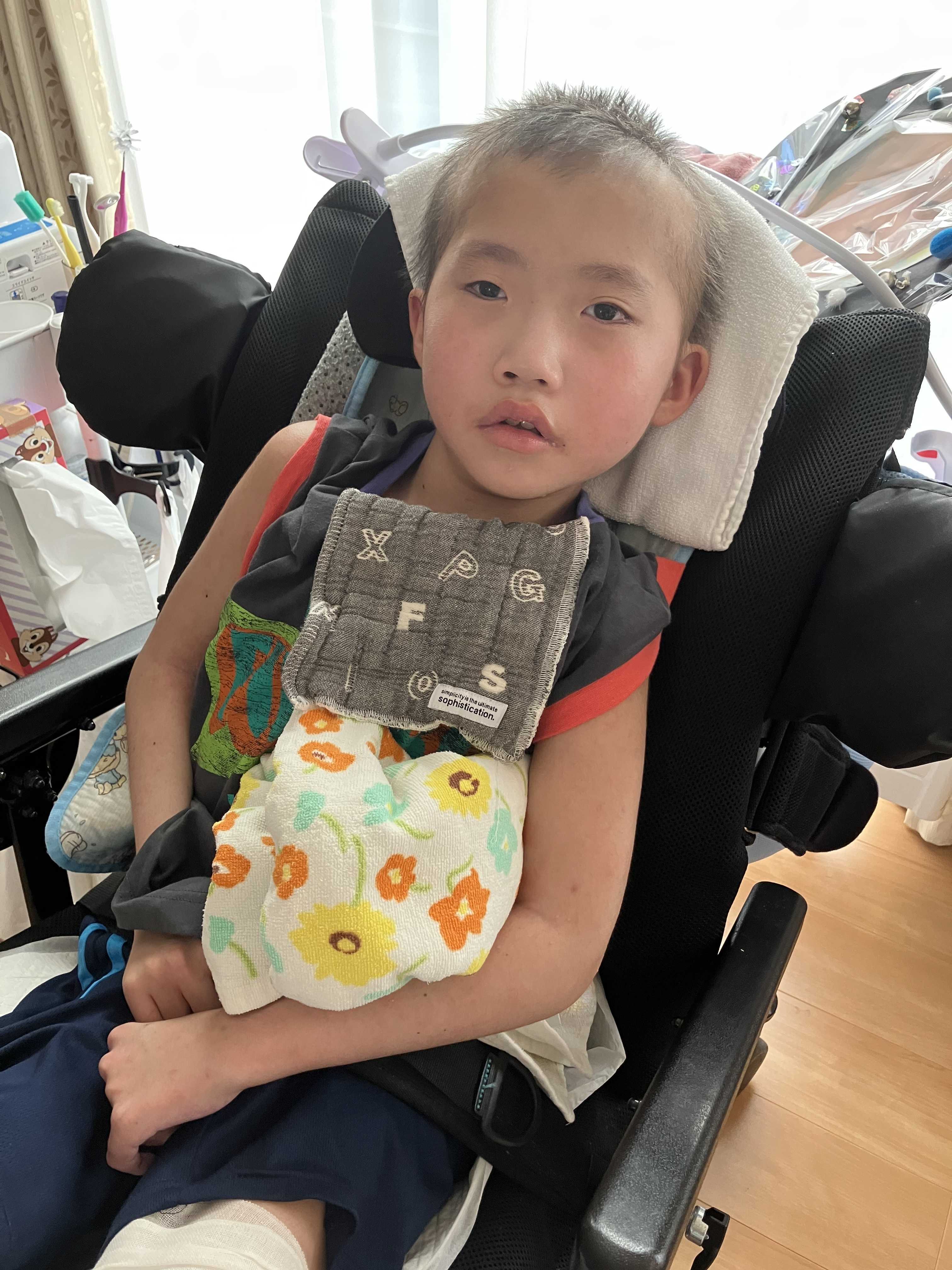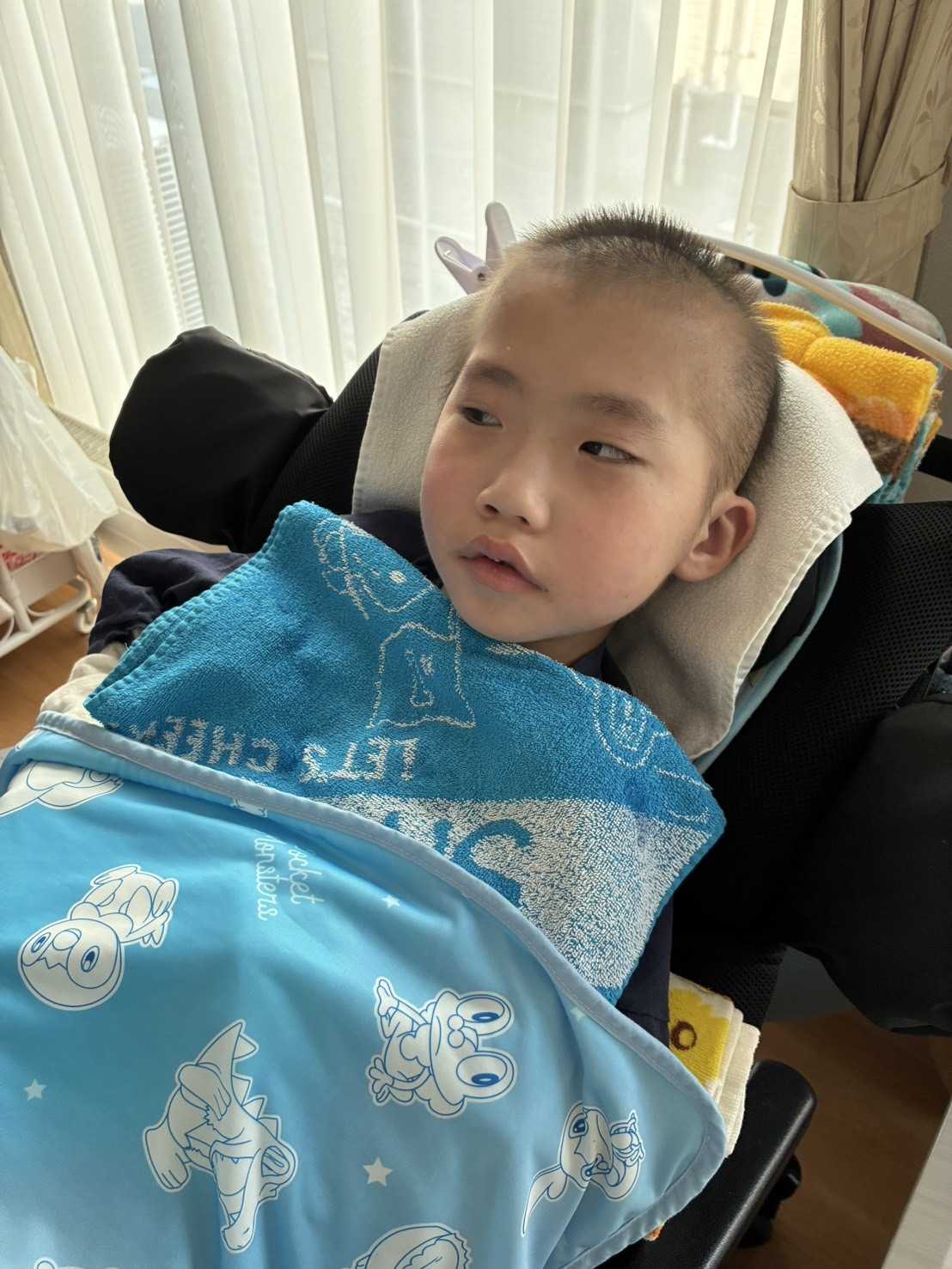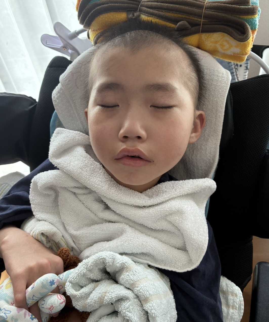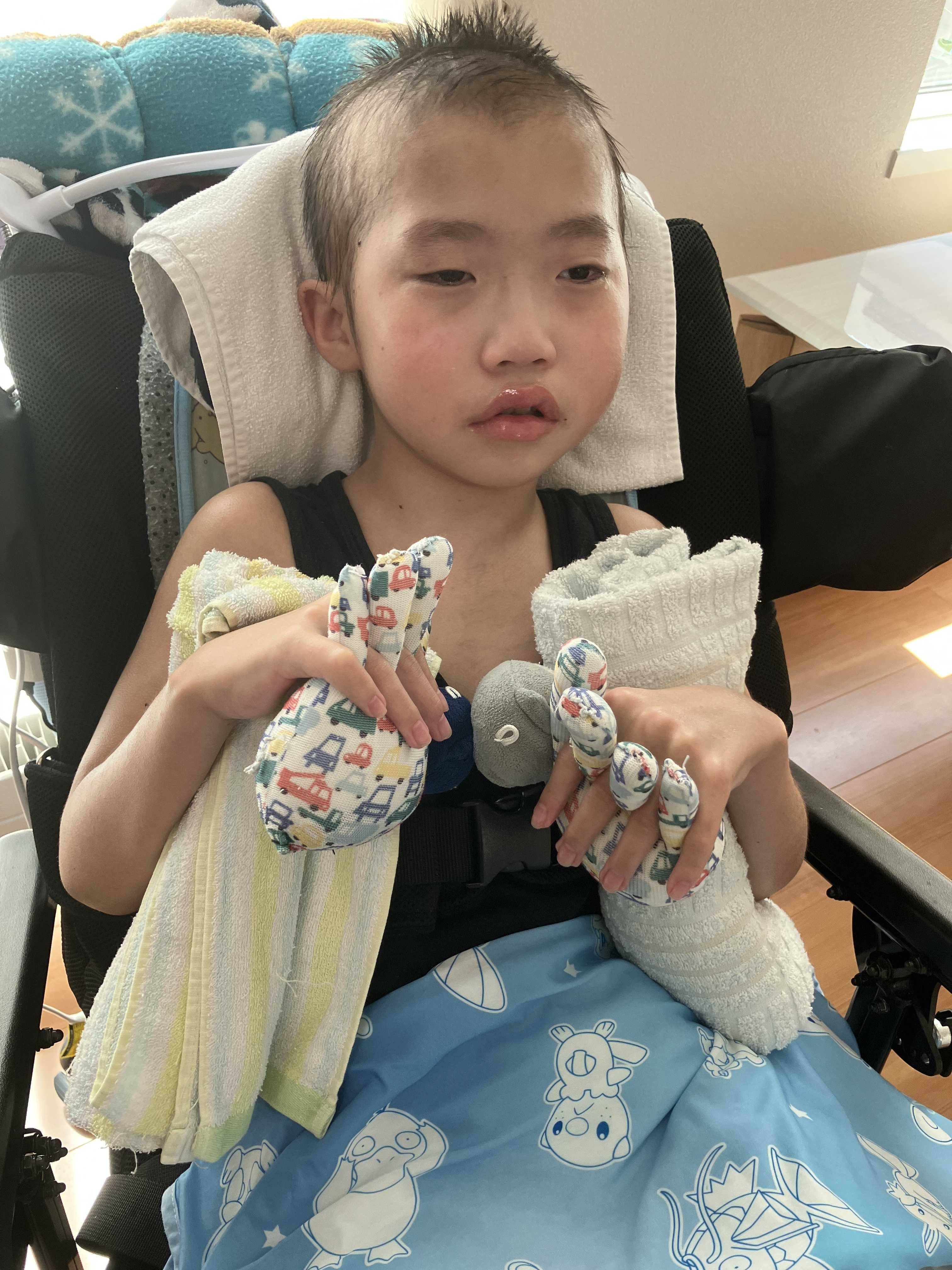 ~10歳長男🐻(小5)~昨日は、定期受診日だった長男🐻リハビリ、診察、胃ろう交換、歯科を受診しました😄🤸リハビリ🤸リハビリでは、関節可動域訓練やうつ伏せ練習、長座位姿勢でのウエイトシフト、今後のリハビリの方針などをお話したりしました☺️うつ伏せは泣きながら頑張っていましたね😅終わった後は、やりきった表情でした😊頑張ったね🤗🦷歯科🦷歯科では左上の歯がグラグラしていたそうで、先生が念のため局所麻酔をして、抜歯してくれました😳来月は右上のグラグラした歯を抜歯予定🗓️グラグラしていることに気づけていなかったので、毎月定期的に歯を診ていただけることがありがたいです🙏🧑⚕️診察🧑⚕️ガバペンを朝と夕方の2回にすると、少し覚醒が下がってしまって、痰がうまく出せずに酸素飽和度が低下しやすいため、夕方の1回のみにしていると報告しました。先生「今は、ガバペン1回200ミリだけど、朝100ミリ、夕方200ミリにして様子をみてみましょうか。」ということで、ガバペンを少し減量して機嫌はどうか?筋緊張はどうか?覚醒はどうか?を確認していきたいと思います💪今日は受診お疲れ様でした😌