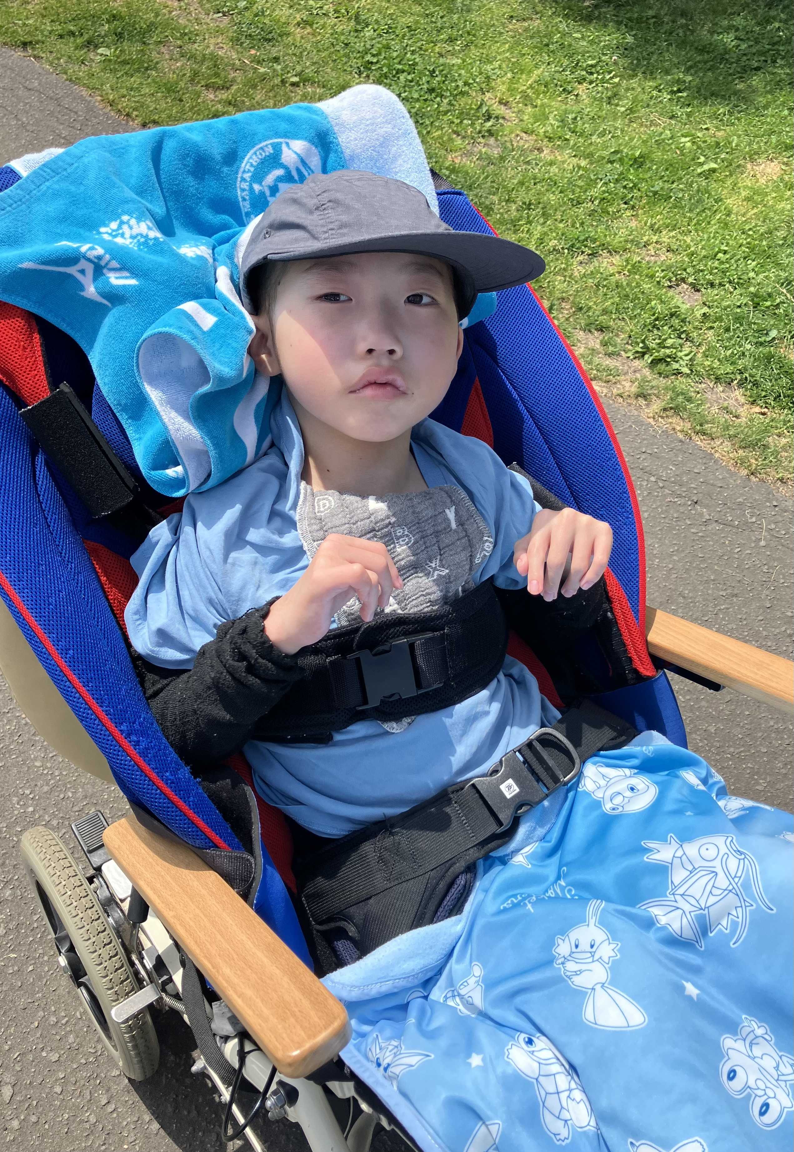~10歳長男🐻(小5)~昨日は学校🏫へ行った長男🐻ちょっと痰がコロコロしてたそうですが、比較的落ち着いていたとのこと😄音楽🎵の授業があり、「たなばた」の歌に合わせてペープサートを持ってユラユラしたり、かえるの合唱のリズムでもユラユラしながら楽しんだそうです👍午後からは、自立活動の先生に車椅子の頭部部分の調整をしていただきました🙏ありがとうございます😊一番突っ張りの強かった時期に作ってもらった車椅子だったので、今の体の状態に合わせて整えていただけるのはありがたいです😄帰宅後の運動タイム🤸ヨガマットでは、ゴロンと横を向いたりするとはみ出すので…マットを新調しました😄直接日光に当たらないと熱くならないし、軽くて折り畳みも出来て良き👍意識的に寝返りはできないけど、ぐっと筋緊張が強くなったタイミングでゴロンと横向きになることもあるので、自分で動けた!動くって楽しい!っていう感覚を少しでも感じてもらえたらなぁと思います😄本日もお疲れ様でした😌