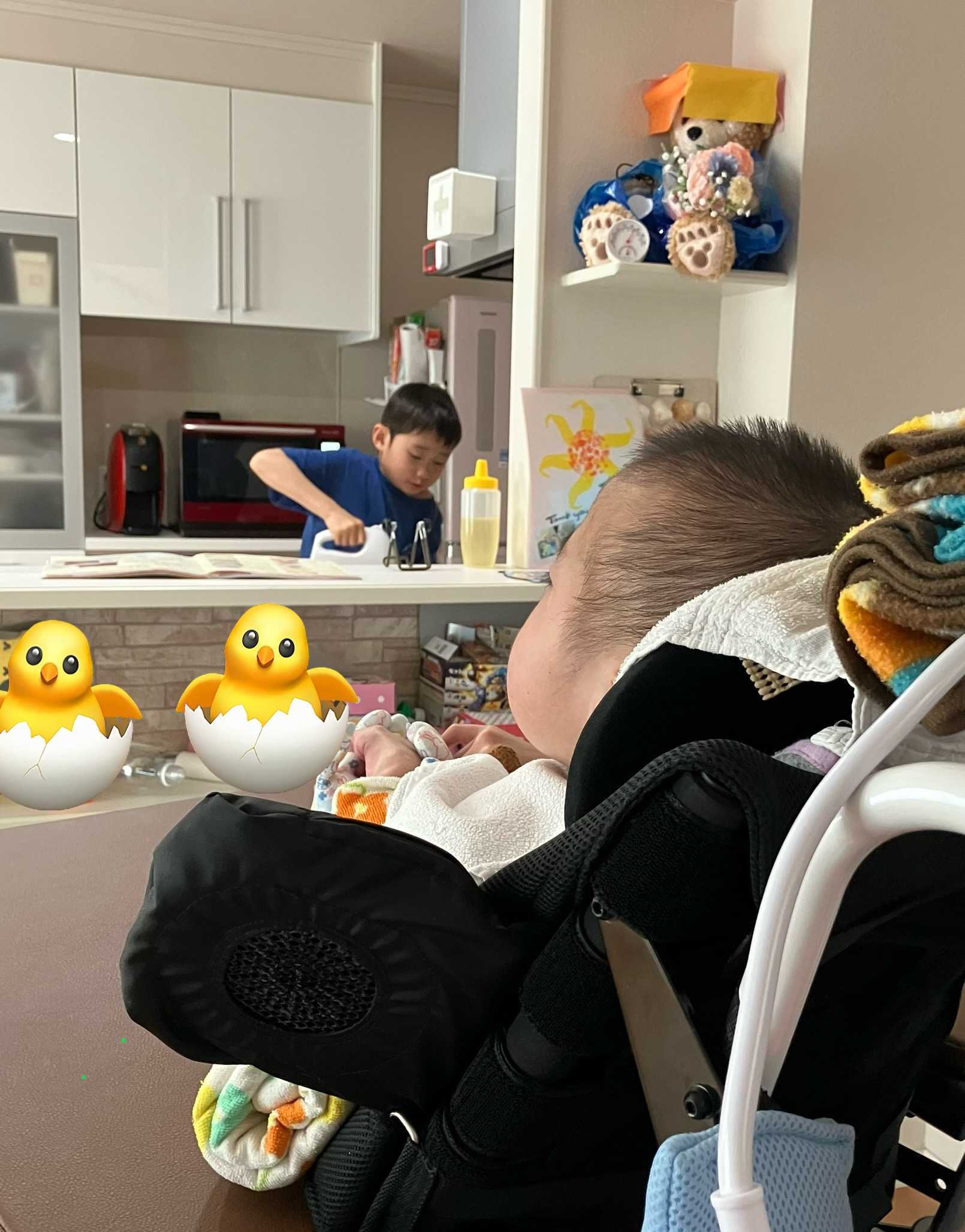 次男🐒のクッキング風景を見守る長男🐻