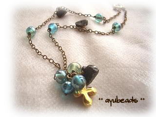 アンティークカラーのガラスビーズでネックレスに。ゴールドの丸っこいクロスがポイントかな…サイズは約37cm。Shop販売価格 3,150円 (税込み)この作品の詳しい説明は、こちらへお問い合わせくださいね((ノ(_ _ ノ)ヨロシクオネガイシマスこのネックレスは↓こちらでお買い求めいただけます。ayubeadsのお店です☆←応援ポッチお願いします。