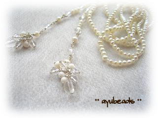 小粒の淡水パールをラリエットにしました。細めなので軽い感じでつけられます。サイズは約95cm。Shop販売価格 4,410円 (税込み)この作品の詳しい説明は、こちらへお問い合わせくださいね((ノ(_ _ ノ)ヨロシクオネガイシマスこのラリエットは↓こちらでお買い求めいただけます。ayubeadsのお店です☆←応援ポッチお願いします。