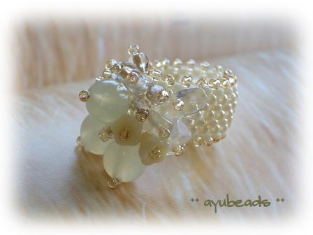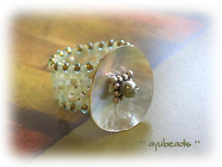 シャンパンカラーの広島ビーズがお手元をとても上品に美しく見せてくれるリングです このリングはshopにてお買い求めいただけます。shopの入り口は↑こちら。 ←応援ポッチお願いします。