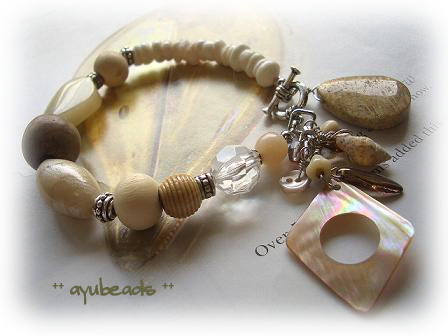 ハワイで購入してきた天然石とシェルをセレクトして作ったブレスレットです ウッドビーズを組み合わせどんなお洋服とも相性のよいナチュラルカラーで統一しました。 このブレスレットはshopにてお買い求めいただけます。shopの入り口は↑こちら。 ←応援ポッチお願いします。