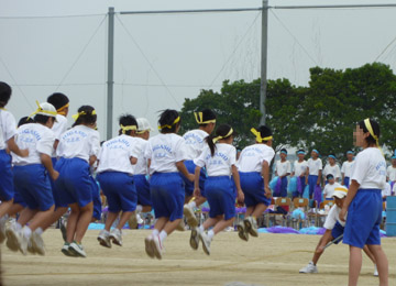 先週土曜日、ミント(中1)の中学校の体育祭がありました。心配していたお天気ですが、途中ちょっと雨が降ってきましたが、なんとか大丈夫でした。中学校の体育祭はミントはもちろん、わたしも見るのは初めてで、新鮮でした!ミントは学級対抗全員リレー(2回)、10人11脚、スコアビンゴリレー、綱引き、大縄跳びに出場しました。最初のリレーでバトンタッチの時、足をちょっとくじいたようでしたが、たいしたこともなく湿布を貼ってもらって、残りの競技には参加できました。なかでも、大縄跳びは体育祭当日に朝練をしたりと頑張っていましたが、本番でなかなか記録が伸びず、ダメかなとあきらめかけた最後の最後で、大記録が出て、見事、学年で1位を取りました!他の競技は成績はイマイチでしたが、十分楽しめました。ミントは参加していませんが、女子の棒引き、男子の騎馬戦よりかなり迫力ありました~午後の部の最初の部活動対抗リレーは、科学部はリモコンカーを走らせながら自分も走り、柔道部は畳を背負いながら走って、バトンタッチ代わりに次の走者に技をかけ、剣道部は二人で向き合って構え、時々打ち合いながら走り、どの部も趣向を凝らしていて、とても面白かったです。ブロック対抗リレーは、エースが勢ぞろいで、大迫力、見応えありました!最後にブロックごとにエール交換をしました。ミントの黄ブロック↓さすが、中学生!たった一週間の練習できれいにまとまっていました。残念ながら最下位だった黄ブロック。でも、十分に楽しめた体育祭でした。次は、ミルク(小3)の小学校の運動会!ダンス、頑張って練習してるようです。楽しみ♪ランキングに参加しています☆応援よろしくお願いいたします。↓↓↓にほんブログ村