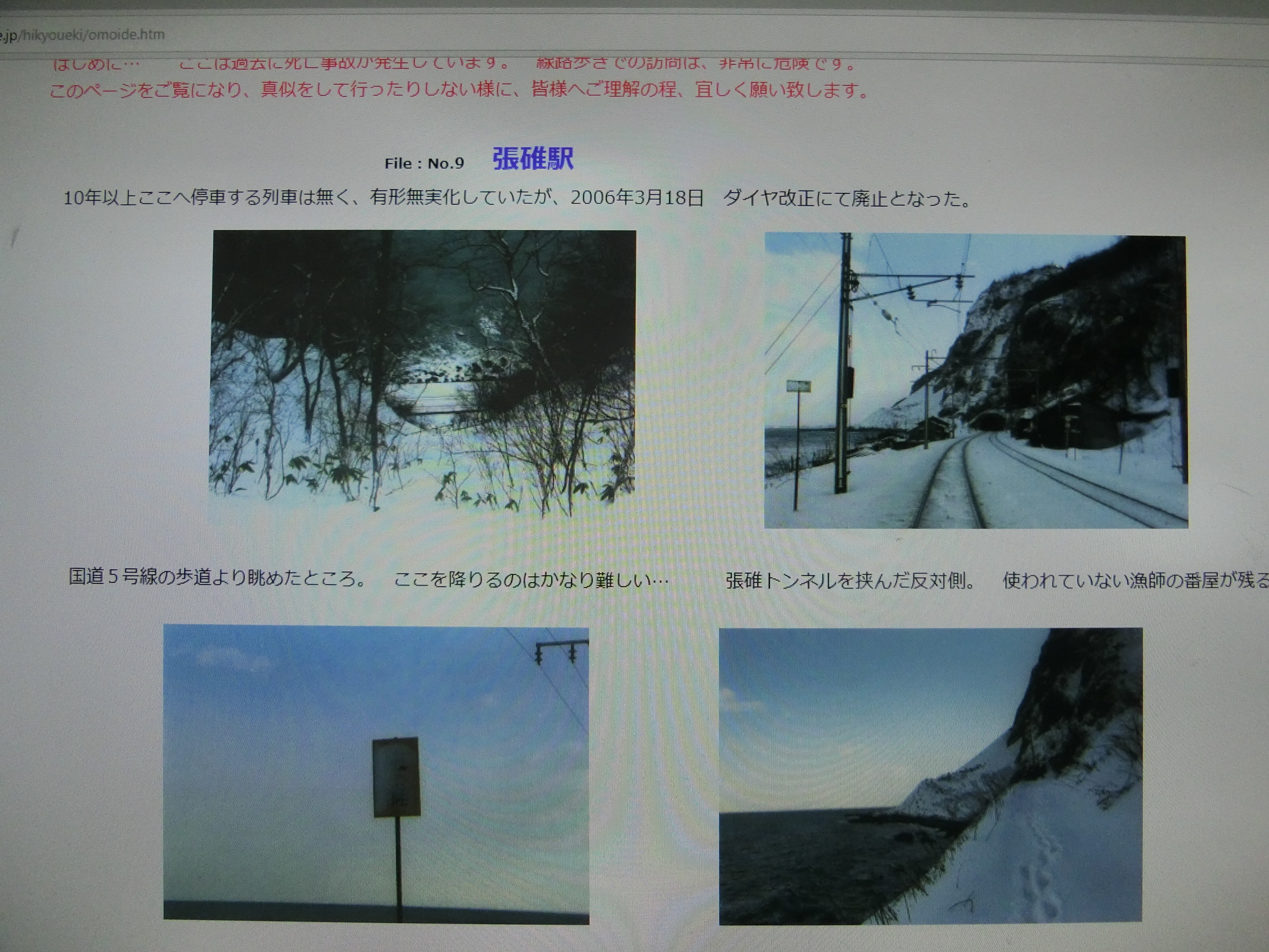 秘境駅とは、人家が少なく利用者がほとんどいない駅だ。それでも、昔は利用者がいたのだろう。いずれ、廃止駅になるだろう。目をそむけたくなるような、厳しい現実と、悲しい駅の末路に光を温める様に、存在に目を向けたくなる。秘境駅と言っても、普通のならば1~2時間待たなきゃならない。何もないところでは、10分もいればもう満足である。わざわざ1つの駅に、ひどい時には3時間も待つ事になる。秘境駅は写真で結構だ。小樽市の函館本線の張碓駅は、2006年に廃止になった。それまでは、片側が崖、もう片側は海であり、汽車でしか行けない夏の海水浴場に行くレジャー様の駅だった。廃止になる前は、1番の秘境駅だった。札幌駅からも近いし、汽車の窓から見えたものだった。今一番の秘境駅は、室蘭本線の小幌駅である。家も無い、山の中でトンネルとトンネルの間の囲まれた信号用の駅である。自分も何回か通った事があるが、降りて見るほどの駅ではない。降りると、行くと帰る汽車が中々来ない。何回か、Youtubeで見ている。5年前、広島県庄原市の芸備線の備後落合駅に行った。降りるつもりはなかったのだが、2時間もそこに誰もいなくて次ぎの汽車を待たされた。秘境駅で、家は1軒人は1人もいなくて、次に行く新見駅まで1人も乗ってこない。当然、誰も乗って来ないし誰も降りて来ない、1人だけの列車だった。夜8時頃に1時間半、まさにたった1人の秘境駅だった。駅の掲示板を見ると、昔は駅員がかなりいて、乗車する人もかなりいたそうだ。おととし、四国に行った時。三好市の土讃線の坪尻駅で15分ぐらい停まったら、そこはちょうど秘境駅だった。山の中で、15分も停まっていい感じだった。JRは4600駅、私鉄は2350駅があるが、秘境駅は200駅以上ある。随分あるものだ。