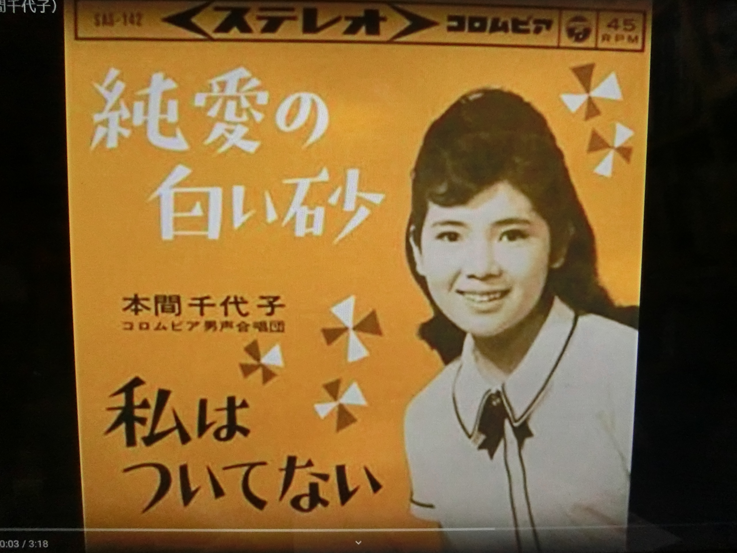 本間千代子は引退しているが、吉永小百合と同世代で同じ年である。今は74歳のおばあちゃんになっているが、東映のニューフェイスでとてもかわいい清純な娘だった。プロマイドの売れ行きが、吉永小百合を抜いて1位になった事もある。吉永小百合が抜かれても、本間千代子ならしようがないと思っていた。あだ名は”チョコ”ちゃんと呼ばれていた。歌を歌い、主に映画は、舟木一夫と西郷輝彦の相手役であった。映画は「君たちがいて僕がいた」「十七歳のこの胸を」、歌は「純愛の白い砂」など。かわいい娘だった。ところが、人気絶調の22歳の時、歌手の守屋浩と結婚してガッカリした。守屋浩と別れて違う人と結婚したが、そのまま引退した。今はそうでもないが、若い頃は清純でかわいい娘だった。