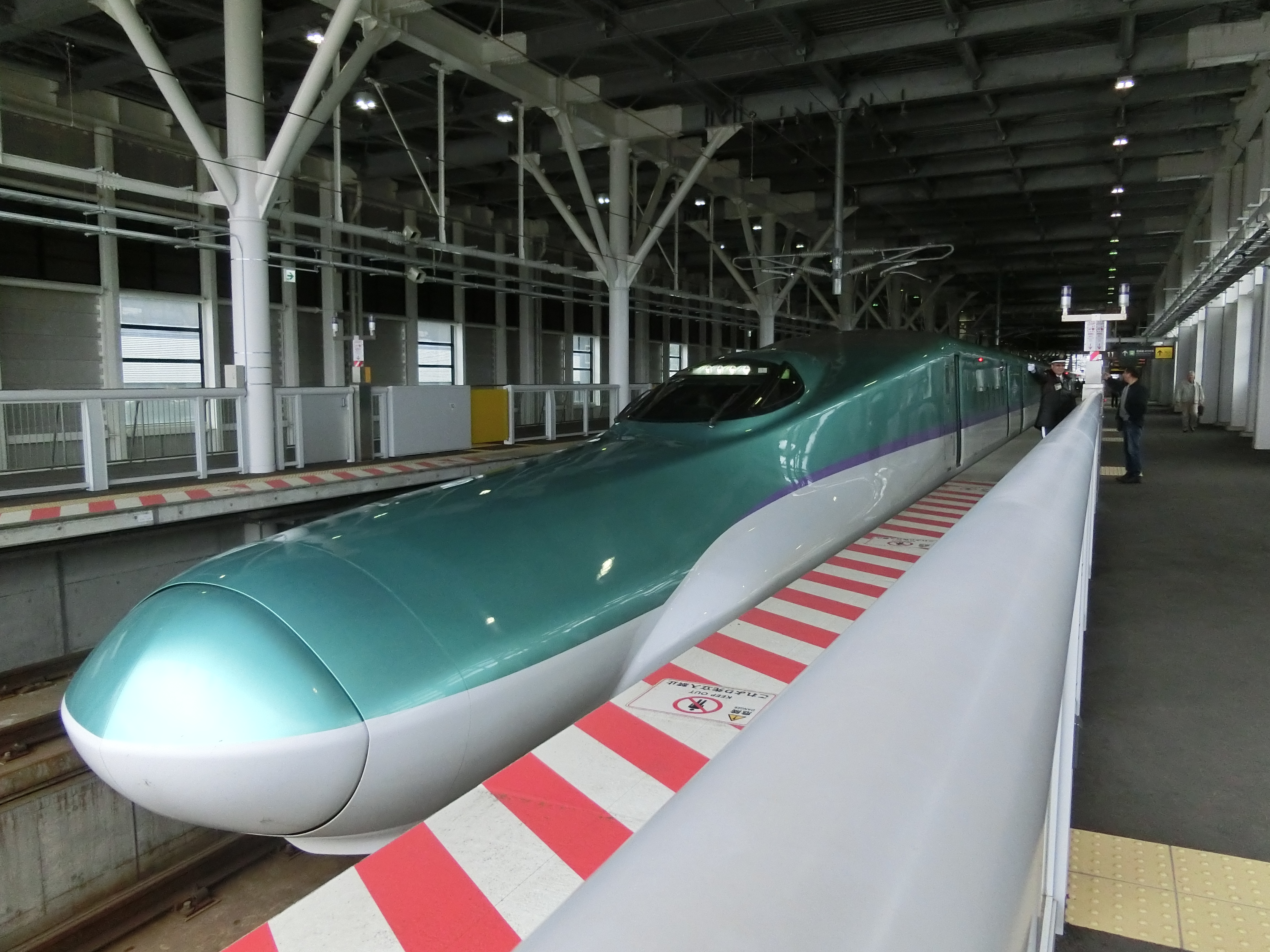 新函館北斗駅でのH5系新幹線新幹線に乗ったのは4回である。25歳の時、岡山駅から大阪駅に行くところ、姫路駅でちょっとホームに降りたら急行が出発してしまった。荷物を置いたままで出発してしまったのだ。すぐ時刻表を見て、新幹線で行けば神戸駅で間に合うと。神戸駅で間に合ったが、隣の人に「何処に行っていたんですか」と、言われ恥ずかしい思いをした。しばらく新幹線には乗っていなかったが、北海道に新幹線が来ると言う事でさっそく乗ってみた。乗心地はさすがにいいが、窓が小さくて最短の距離で行くものだから、景色に何もあった試しはない。確かに速いのはいいけど、値段が高すぎるよ。 新函館北斗駅 盛岡駅で”はやぶさ”と”こまち”が合併速さだけだったら新幹線がいい。自分は、速さだけじゃなく景色を楽しむので鈍行列車がいい。