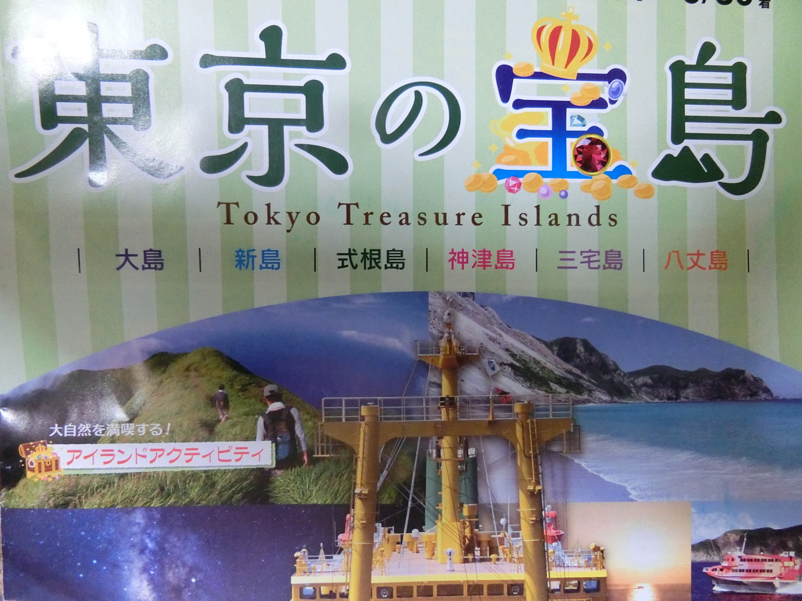きょう(16日)から”秋の旅”「東京近郊の旅」に行く。離婚してからの旅、47回目の春夏秋冬の旅に、6泊7日の旅である。”夏の旅”では、行けなかった「伊豆大島」と「真岡鉄道」「関東鉄道常総線」、そして今まで3回行った「横浜市」「川崎市」に行こうと思っている。フェリー賃とカプセルホテルも予約して、それらは予定だ。消費税が上ってから、その分を勘定して行かなくてはならない。”秋の旅”は少し日数が掛かるが、安いカプセルホテルと交通費で時刻表とインターネットを見て行くよ。 「東京の宝島」パンフレット