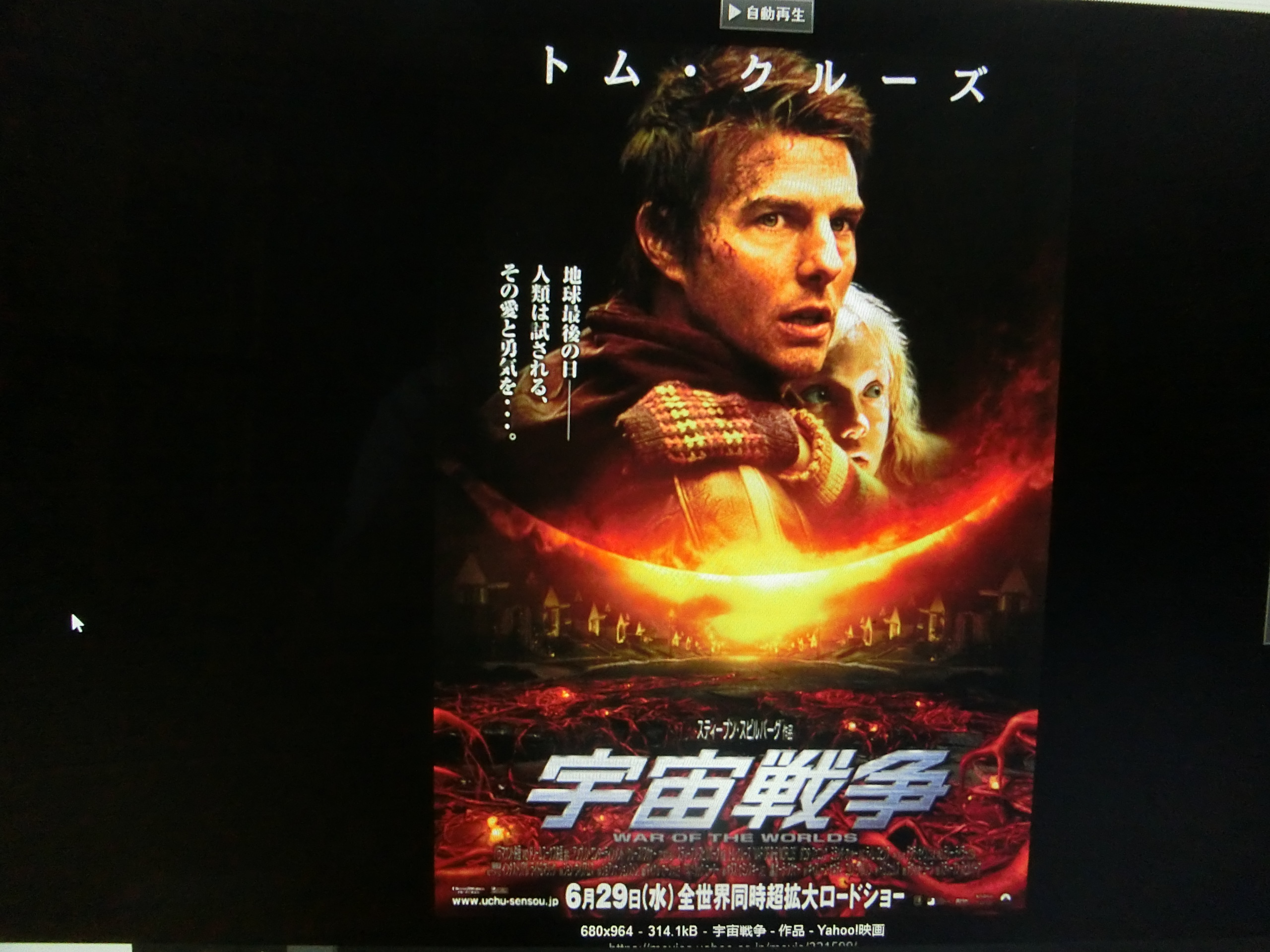 火星人来襲!1938年の10月30日は、「ニュースパニックデー」である。放送されたラジオドラマによって、一部にパニックが引き起こされた日である。放送されたラジオ局は米国CBCラジオ。放送されたドラマは、「SFの父」とも呼ばれるイギリスの作家、「タイムマシン」などのH.G.ウェールズの「宇宙戦争」だ。この小説は、ある日ロンドンの南西郊外に空から緑色の流れ星となって巨大な円筒形の物体が落下し、やがてその円筒形の物体から現れた火星人が圧倒的科学技術力、火力によって地球の侵略を始めるというものだ。問題のラジオ放送では、この内容を放送される米国に置き換える為、地名などを米国のものに置き換えたり、音楽を流している途中に「放送の途中ですが、ここで臨時ニュースです」といった具合に、架空の報道の形態をとって、自然に物語をスタートさせるなどの演出が功を奏した、現実の話だと大勢の人が勘違いを起こし、警察に問い合わせ電話が殺到した。一応、放送の始めと終わりには「このドラマはフィクションです」という断りが入ったそうだが、一般の人はそんなに注意深くラジオを視聴しちゃいないから、聞き逃して気がつかない人が大勢いたことだろう。この騒ぎの元となった小説、「宇宙戦争」はSFの古典的な名作として映画化されている。最近では「宇宙戦争」(米国 2005年 スティーブン・スピルバーグ監督 トム・クルーズ主演)がある。スティーブン・スピルバーグ監督、トム・クルーズ主演で、見ない訳はない。以上のようなことはなかったので、だけどおもしろかった。