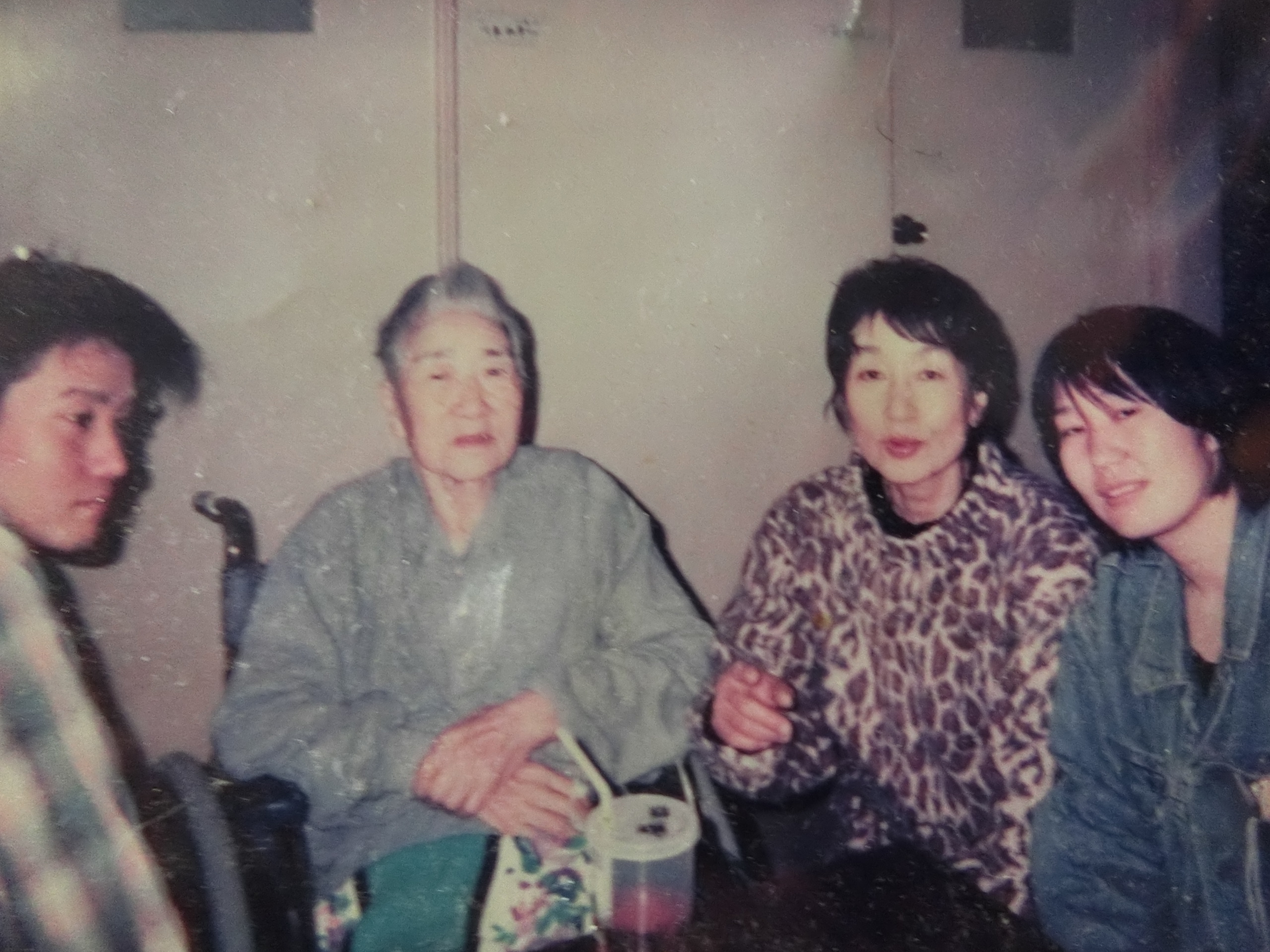 姉が亡くなった1999年、病院で右から3人目 母、母が亡くなった年(当時87歳)右から2人目、姉(三女)故76歳 在津久見市左 甥 49歳 在札幌市右 姪 50歳 在大分市撮影 自分 73歳 在札幌市旦那 4年前亡くなる(当時70歳)姉が亡くなったか。(11月4日午後2時)家族6人、自分を除いてみんな亡くなった。涙も出てこなく、小さい頃を想い出している。姉は、親父が亡くなってから、ブリヂストン(株)を辞めて、1人で東京に引っ越した。そこで、旦那と知り合って、家族とケンカをし、半ば駆け落ちのごとく結婚をした。子供が産れて、2番目の姉の兄貴も結婚を承諾した。そこで、豊平区美園のうちの裏に10年間暮らした。ちょうどその頃、自分が結婚したので、一家は旦那の実家(津久見市)に引っ越した。まあ、いろいろあったがよく耐えてきた。姉は約15年前、乳がんになり、肺がんになりそして終わりだ。長女は、胃がんで50歳の時に亡くなった。次女は、子宮がんで44歳の時に亡くなり、早いものだよ。両親も、死因は違うけど、がんになっている。自分は、がんには成らないけど、脳出血になりどうしようもない。今は、質素な暮らしをしているよ。姪は、看護婦をしており、全ての事を撒くってくれるだろう。葬式はしないとのこと。(骨は海に撒くとのこと)おととい電話を入れた時は、苦しいまでに返事をしていたのに。自分は、来年正月に大分県に行くつもりだ。