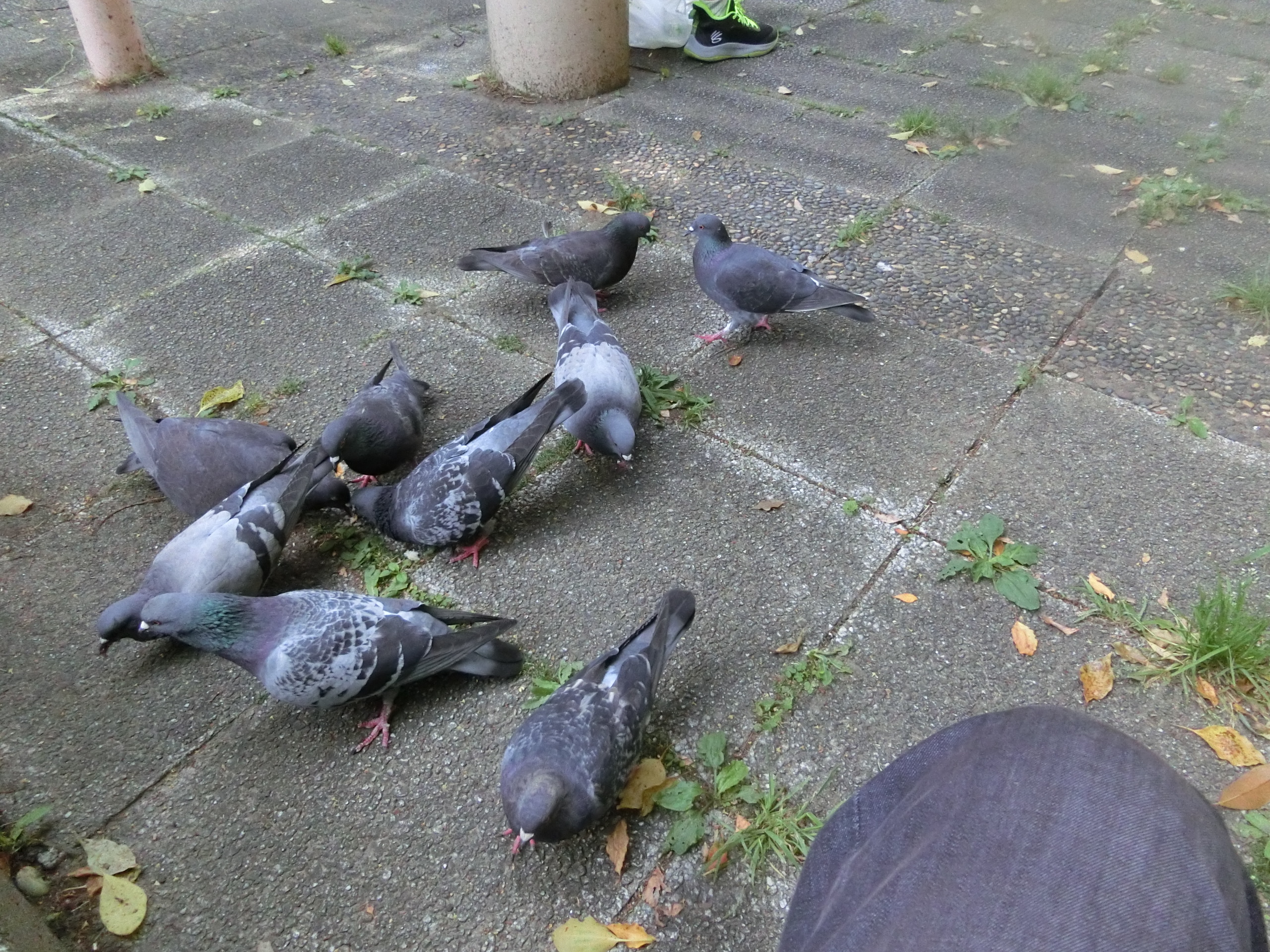 そこら辺のハトが寄って来て、自分が食べているパンを半分以上を食べつくした。