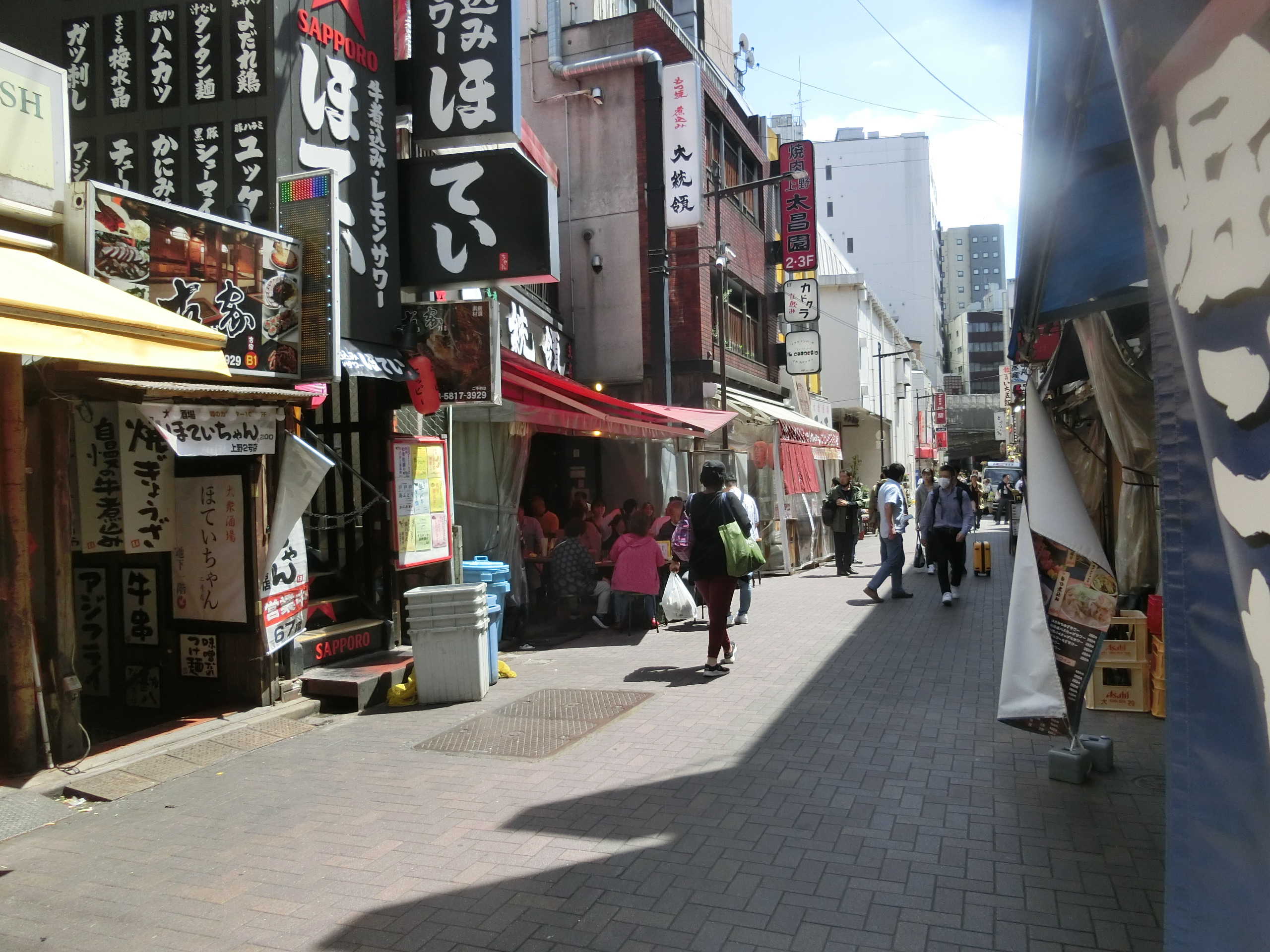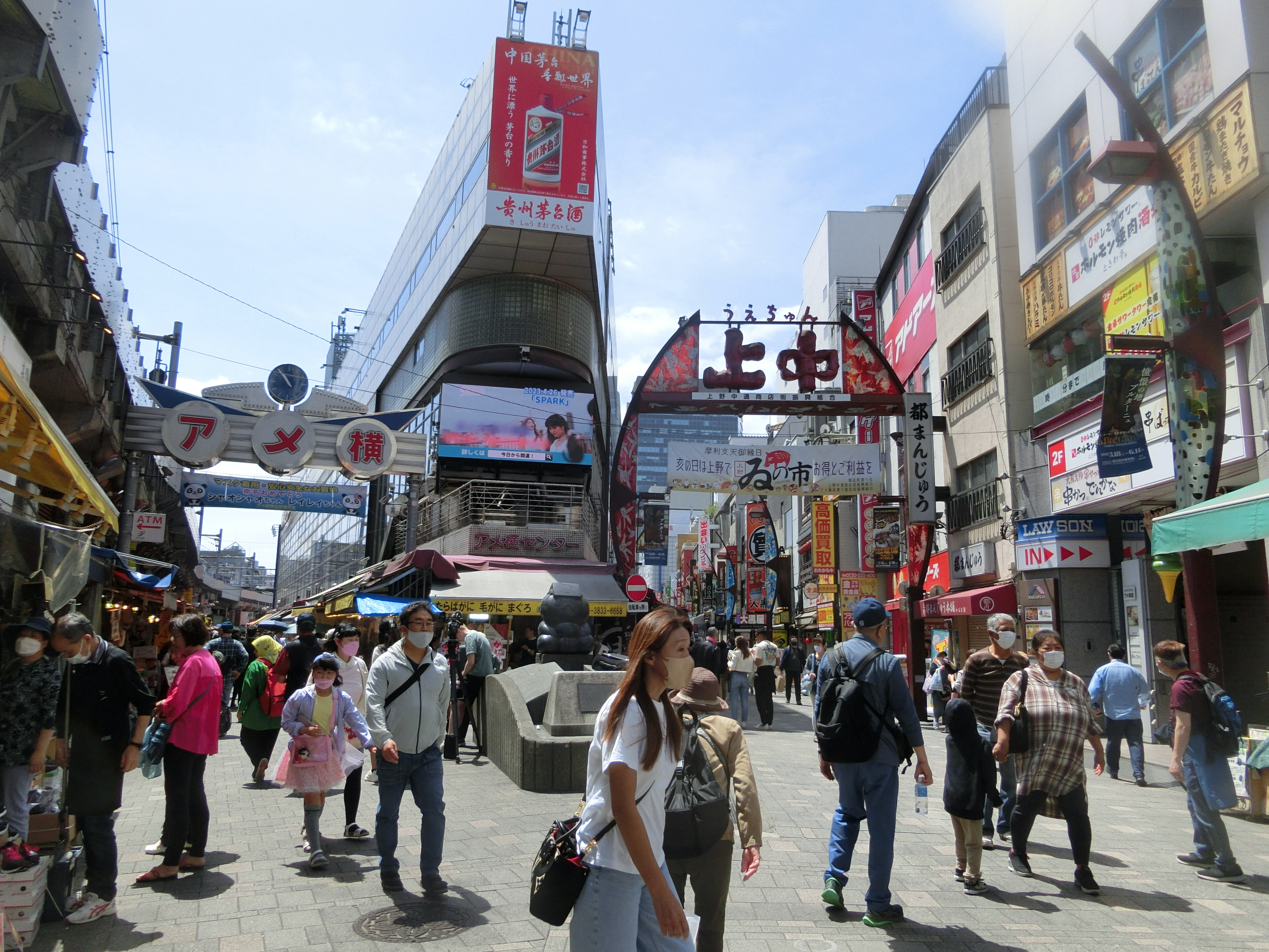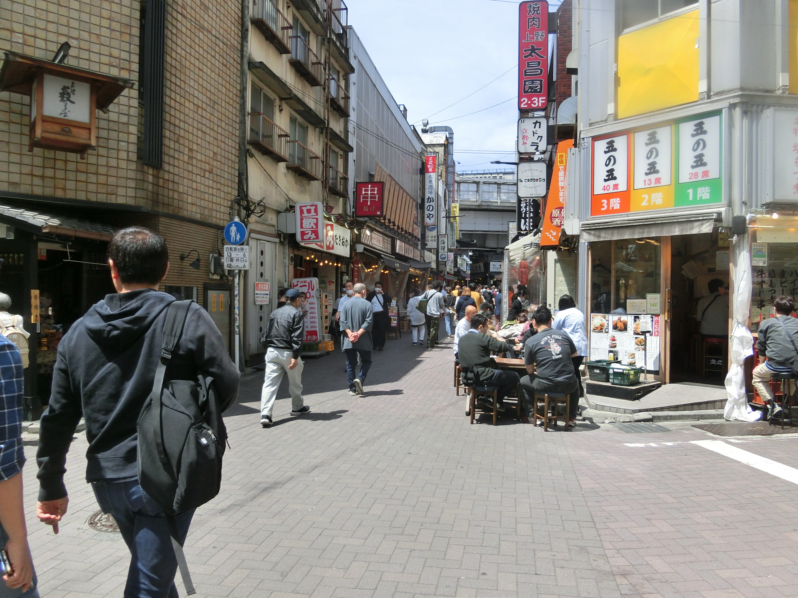 アメ横商店街で、朝っぱらから酒を飲んでいる人がいる。
