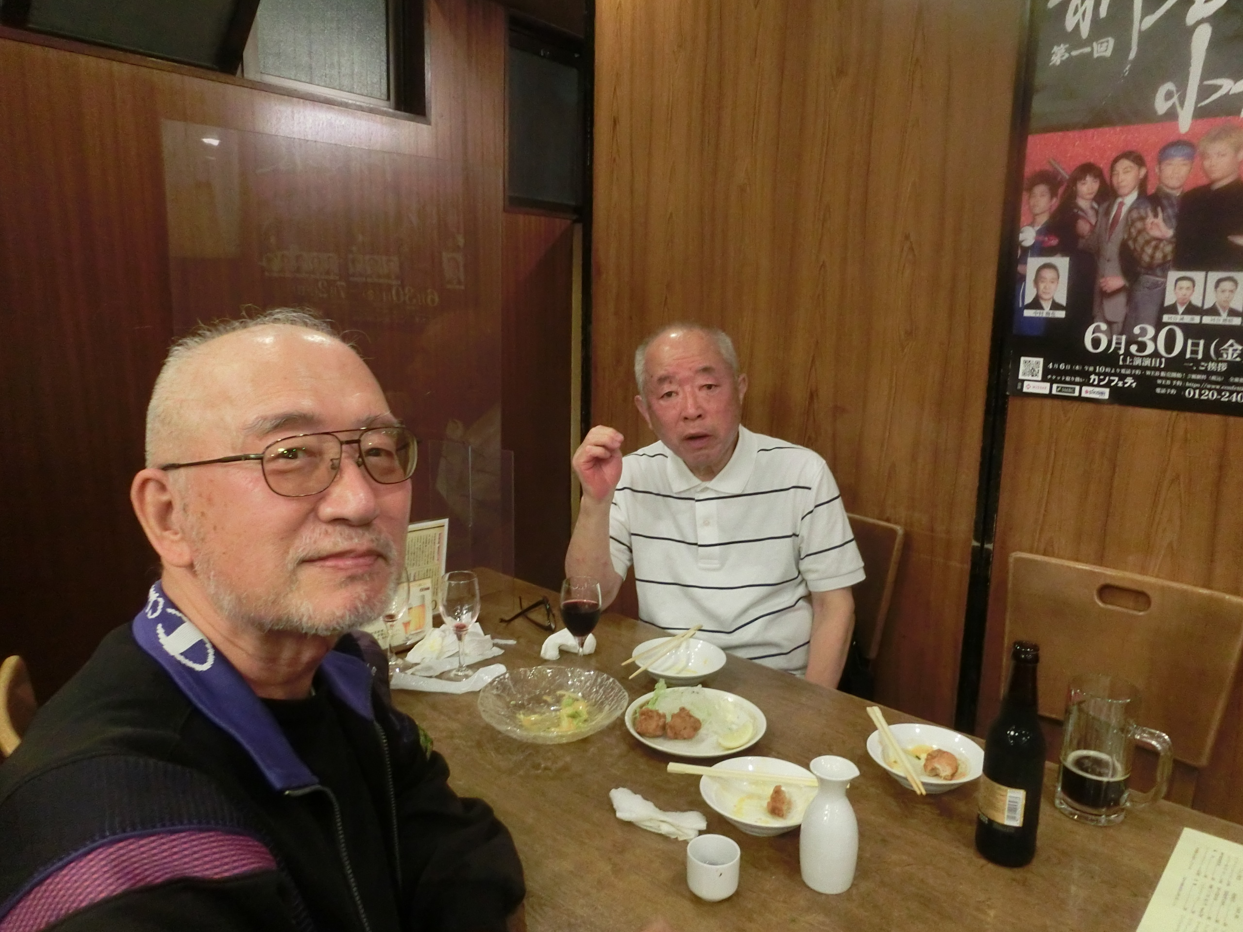 店に2人が入るところ、そこでまたビールと日本酒を飲む。