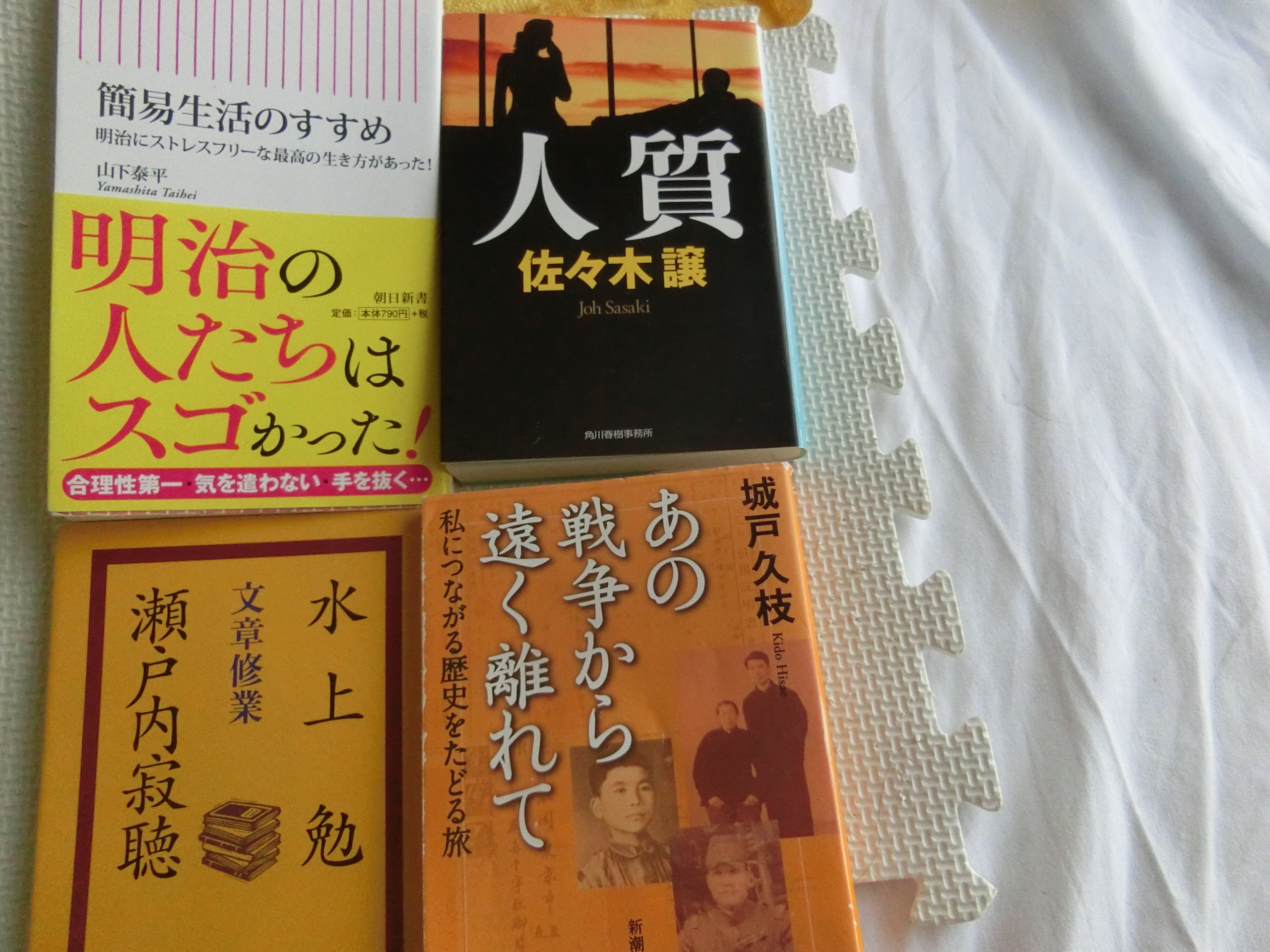 「簡易生活のすすめ」(山下泰平著) 「人質」(佐々木譲著) 「文章修業」(瀬戸内寂聴・水上勉著) 「あの戦争から遠く離れて」(城戸久枝著)