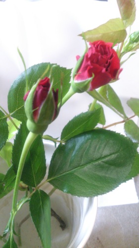 前に習っていたアレンジメントの薔薇挿し木にしておいたんですがなんと 咲きました~(*^▽^*)でも そのままだと、まだまだ弱っちぃ木がダメだそうで泣く泣く 切り花に(^^)