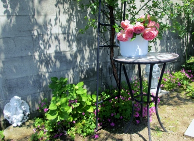 1週間も夏日が続いてカラカラだった我が家の庭や畑にもようやく優しい恵みの雨が降りサラダ菜や青じそが緑、美しく生き生きと伸び始めました。緑の美しいサラダを毎日いただいています。今、重宝しているドレッシングは先日、ヨーグルトでチーズケーキを作った時に出たヨーグルトの漉し汁にオリーブ油、塩、こしょう、レモン汁を混ぜたもの。生協さんからノーワックスのレモンが届いたのでレモンチーズケーキを作ろうと思いついたのですが~クリームチーズもカッテージチーズもありません、、、、うーむ450gのヨーグルトを一晩漉して出来たクリーム(200g)に卵1個と砂糖30gと薄力粉10gを加え(卵白はホイップしてメレンゲを作る)粉チーズ20gとレモン汁とレモンの皮とバニラエッセンスを入れて混ぜ180度オーブンで30分前後焼きました。沈んでしまったけどねきれいなところをお皿によそうと。。ねしっとり、ふんわり~美味しくできました!コーンスターチを加えて少し固めにした方が良かったかな?ヨーグルトを2晩漉してクリームを少し固めにしたらどうかな?ただいま試行錯誤中!白ワインのおつまみにも良くあいましたょ。☆;*;★;*;♪☆;*;★;*;♪今年は春先から日曜大工で忙しい夫さんに代わって私が庭を少し頑張っています。トマト、ゴーヤ、キュウリなど夏野菜の苗を植えてキョウチクトウの木を抜いて空いていた場所に大きなアーチを置いてみました。一箇所に白いモッコウバラを這わせて、もう一箇所には10月になったらツルバラを移動して植えようかなと色々思い巡らせて楽しんでいます。今は「不思議の国のアリス」のうさぎさんがテーブルの上で毎日私を待っていてくれています。少しずつ、お気に入りの場所になっていくと良いのですがね。。うさぎさん恵みの雨と同時に早々と梅雨入りしてしまい、ちょっと残念ですが・・まだまだ晴れ間にはデッキに出て美しい緑を堪能しながら食事を楽しみたいと思っています。大好きな季節だから~にほんブログ村よろしければこちらの方へも遊びに来てくださいね。