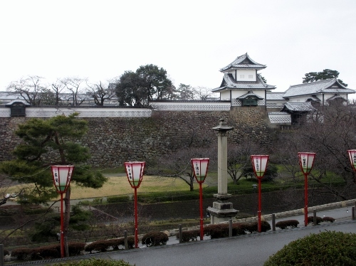 馴染み深い金沢城公園と兼六園ですが北陸新幹線開業前にゆっくり歩いてみたくて昨日は一人でカメラ散歩して参りました。時々、小雨の降る一日でしたが、傘を差して愉しくテクテク~石川橋を渡って石川門をくぐると広い芝生の向こうに新しく復元された菱櫓(ひしやぐら)・五十間長屋・橋爪門続櫓が見えてまいります。(菱櫓と橋爪門続櫓を五十間長屋でつないでいます。)向かって右側に写っている櫓が菱櫓です。高さ11.7mの石垣の上に建築されており3階建で、約17mあります。「櫓」とは「矢の倉」とも云われ、武器の倉庫の意味ですが、ここ菱櫓は主に周辺を見張る役割を担っていました。菱櫓という名前の通り、建物の平面は菱形で、四隅の内角は夫々80度と100度になっています。建物が菱形の場合、柱も菱形になっています。入り口の近くまで来ました。橋爪門続櫓が見えています。橋爪門(一の門、二の門)をくぐって中に入ります。橋爪門は二の丸の正門として、最も格式の高い門でした。菱櫓(ひしやぐら)と五十間長屋(ごじっけんながや)です。建物の内部です。日本に古くから伝わる木造軸組みの工法で造られています。これらの建物は戦いの際に二の丸を守る為の施設で石落しや鉄砲狭間となる格子窓が設けられ、白塗漆喰(しっくい)壁や海鼠(なまこ)壁で防火構造になっています。また屋根は白い鉛瓦になっています。五十間長屋は普段、武器等の倉庫として使われていました。。。テクテク~石川橋まで戻って兼六園へ百万石前田家の庭園として造られた兼六園は、水戸の偕楽園、岡山の後楽園とともに、日本三名園の一つに挙げられます。ほぼ現在の姿に造園されたのは13代藩主斉泰の時代です。「兼六園」の名は宏大・幽邃(ゆうすい)・人力・蒼古・水泉・眺望の六つを兼ね備える名園として命名されたと伝えられています。冬の風物詩・雪吊りや梅苑の紅梅白梅など四季折々の自然が織り成す美しい景観の庭園です。お馴染みのスポットです!お気に入りの場所から霞が池を撮りました。こんなショットも。。モデルさんの撮影です。ブログ用に許可を貰って一枚撮らせて頂いたのですが、、急な事で慌ててしまいました。^^!兼六園を出て兼六園下から住宅街を通り抜け木で造られた梅の橋を渡ってひがし茶屋街に向かいました。橋場町の方の入り口とは反対側から茶屋街に入って行く事になります。ひがし茶屋街に到着しました!江戸時代の封建的制度のもと町方にわずかに許された娯楽と社交の場です。お茶屋には主に上流町人や文人たちが集い一見さんは入ることができませんでした。琴,三弦、笛に舞、謡曲、茶の湯から俳諧まで多彩な教養と技能が客と芸妓に求められました。国指定重要文化財「志摩」に入ってみました。入館料400円。つづきは明日に書きますね。にほんブログ村
