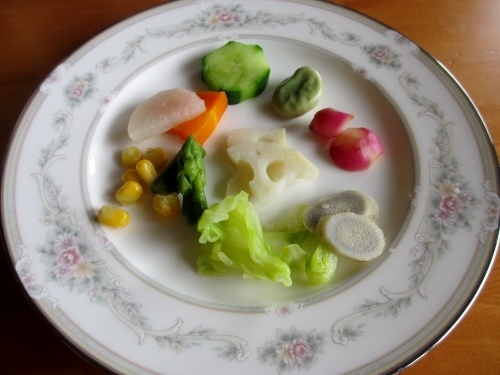 孫と過ごした夏休みの思い出。心を込めて茹でたお野菜。さー召し上がれ。当てっこしながら~たくさん食べてくれました。一緒に「かぼちゃのロールケーキ」も作ったんですょ。くるくる巻いて~出来上がり!楽しいティータイムでした。お土産の分もとって置きましょう。二泊三日の予定で一緒に過ごした夏休み。大切な思い出になりました。「かぼちゃのロールケーキ」は竹内富貴子さんの「カロリー1/2で、美味しいお菓子」に載っています。作り方を紹介しますね。材料かぼちゃ 1/3コ(正味400グラム)バター 大さじ1砂糖 大さじ2塩 小さじ1/6牛乳 カップ1/3ラム酒 大さじ1パイナップルの缶詰 4枚パイナップルの缶詰の汁 大さじ1レーズン 40gサワークリーム 40g作り方かぼちゃは大きめのザク切りにし、蒸して皮を除き、すばやくつぶします。(ラップフィルムをかけて、電子レンジに10分間かけて柔らかくしても)なべにかぼちゃを入れてバター、砂糖、牛乳、ラム酒、塩を加え弱火にかけて、木ベラで混ぜながらねっとりとしたペースト状に練り上げます。パイナップルはいちょう形に切り、缶詰の汁とレーズンとともになべに入れレーズンが柔らかくなるまで煮ます。荒熱が取れたらサワークリームを加えて混ぜます。使ったサワークリーム練ったかぼちゃを8等分し、ラップフィルムの上に1センチの厚さにのばし中央にパイナップルのサワークリーム和えをのせて巻きずしのように巻きます。冷蔵庫に30分間ほど入れて、落ち着かせます。ラップフイルムをはずし、食べやすいサイズに切っていただきます。私たちはちょっと形が悪くなりましたが~○○君はたいそうお気に入りで迎えに来たお母さんはレシピを写して、一緒に作る約束をしていました。「楽しかったよ、また遊びに来てね」(^。^)にほんブログ村ブログランキングに参加しています。是非ポチしてね。よろしければこちらの方へも遊びに来てくださいね。