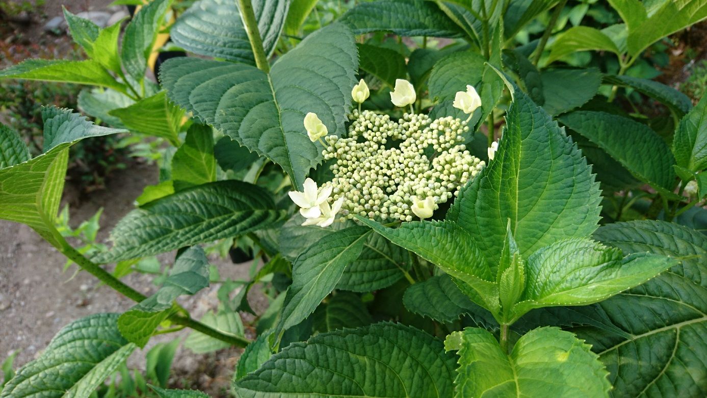 裏庭のガク紫陽花、まだ2、3輪しか咲いていないけど