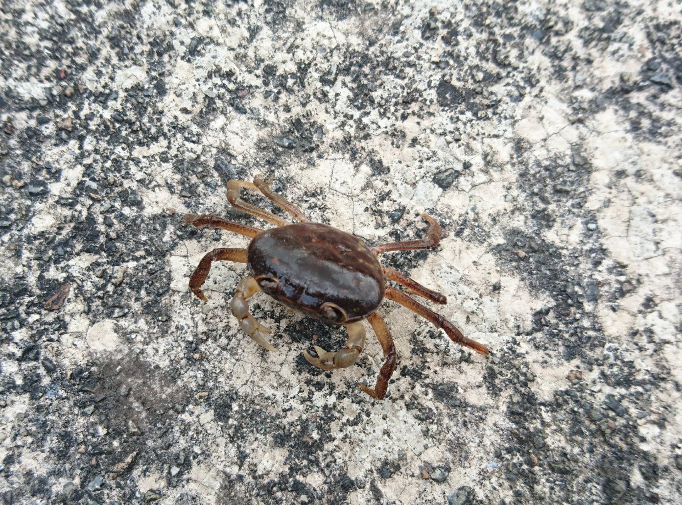 サワガニ、​昨日刈り取って放ってあったハンゲショウの下から出てきました。