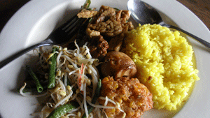 レギアンはJL.NAKURAに「OKAZUYA」という赤い看板が目印なんだけど、その名の通りお惣菜やができました。インドネシアのワルン(食堂)スタイルで、好きなお惣菜を買ってその場でたべれるし、お持ち帰りもできる。てんぷらは注文であげてくれるから、あつあつのが食べられる。大皿にいくつかの小皿をならべて食べる定食風。う~ん。いい感じ。お値段はパパイヤスーパーでお弁当を買って食べるのと同じくらいだけど、お味噌汁もあるし、もしメニューが日ごとに少しでも変わるなら、こっちに来たくなるな~と思います。おからコロッケとかマーボーナスとか家庭のご飯って感じがとてもいい。 BALI BAGUS ONLINE バリ島 ロングスティ 長期滞在 アパート レンタルハウス 観光 旅行 ホテル 大学 留学 スパ レストラン バリ BALI