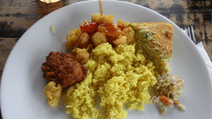 「お正月だから~」というのを言い訳に、大晦日からさんざん飲んで食べて・・・のお正月でした。昨日は昨日で、2日目の新年会ということでサヌール方面にいたんですけど、ここでも何度か書いているKOKOYAで軽くごはん~~と思い、メニューをみていたら、なんとこんなメニューが。そばめし焼きそばとチャーハンの合体版みたいな食べ物。ショッキングです。しかもKOBE STYLEって書いてあって、神戸じゃこれって普通なわけ???ってまたまたショッキング。しかも、スタッフが、「これ欧米人よく食べる」って・・・それもショッキング。あまり新しいものにチャレンジしない私ですが、思わず頼んでしまいました。なんだか新しい食感っていうか、不思議な感じ。でも焼きそばも焼き飯もすきだから、まぁ合わさって二つをいっぺんに楽しめるからお得なのか?! BALI BAGUS ONLINE