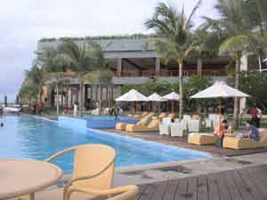 ドリームランドのレストランバーKELAPAのことは前にも書いたことがありますが・・・。先日久しぶりに行ったらエントランスで75,000ルピア払わされた。げ!なんだよ~!エントランスチャージとるのかよ~~!とかなりむっとした顔をしちゃいましたけど、これ、飲食代と差し引かれるので、実際は飲食代を前払いしたようなもの。ビールとつまみを頼んだら、ちょっとプラスでお金を払うかな~という金額。75,000ルピアに満たなくてもお金は戻ってきませんwこの日はハイネケンの生のプロモ企画があって、2つ頼むと一つついてきました!ちなみに30,000ルピアでプールのファシリティが使えます。海を眺めながらのビール。やっぱりいいですねー。 BALI BAGUS ONLINE↓ご協力をお願いします↓