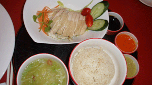 中国の海南(ハイナン)地方のご飯だとおもうんだけど、これバリでも食べれます。シンガポールで初めて食べて、前にバリのシンガポール中華の店、シノワセリズで食べたのがおいしかったんだけど、今はもうメニューからない。先日かまぼこを食べた中華食堂Tanjung Pinangでハイナンライスを見つけて食べようとしたら、もう夜なのでないといわれて、こりゃー次回は昼間にこなきゃ・・ということで2度目、12時すぎにいったところ、やっぱりないといわれた。お店の人曰く「10時オープンのころにくれば絶対ある」ということで3度目の正直・・・というか、ここまできたら意地でも食べたい!気分になって、日を変えて、今度は朝の10時、店のオープンと同時に入店。「ハイナンライス~~!」と注文をする。出てきたのが上の写真。待望のハイナンライス。鶏のスープで炊き上げたごはんと、茹で鶏。バリらしいのは一緒に焼豚みたいのもついてきました。だしでたかれてるからご飯もおいしいし、チキンもやわらかい。ようやく食べれた~~という思いもあって、満足。ちなみにシンガポールで食べたハイナンライス(チキンライス)はこれ。 写真探してると、私のPCにはほとんど食べ物の写真しかなくて笑えたwさて、ラマダーン明けのバリ。いつもどおりに、クタの渋滞が始まっております。でかけると家に帰るのにすごく時間がかかってしまうので困ります。もうみんな車で他の島から来るのはよそうよ~~~。 BALI BAGUS ONLINE ↓ご協力お願いします↓