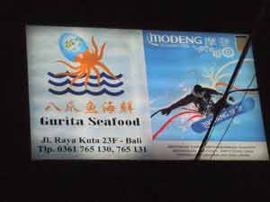 最近のRAYA KUTA通りの北側(サンセットロードに近いほう)は、中華レストラン、特に海鮮の中華がたくさんならぶようになりました。で、昨日はお誘いをうけて、その中のひとつGURITA SEAFOODへ行ってまいりました。 先日大トロ食べて、バリにすんでてよかった~なんていってましたが、昨日はこれ。 全部ハタです。ハタも、 私はもしかしたらバリで食べたのが初めてじゃないかという魚なのですが、高級魚らしいじゃないですか。ハタってきいて、あの小さい魚かなと思ったくらい(それはハタハタだった~~)っていうくらいなじみがなかったんですけど、バリでは何度もいただいております。が、昨日のはまた特別でした。そのでかいのなんの。なんでもスンバ島のほうでとったものを「生」のまま香港のほうに輸出してる方がおりまて、その方の差し入れだったのでありました。上の写真、ハタのスープ、ハタのから揚げ甘酢ソース、蒸したハタの生姜醤油ソース。ハタ、ハタ、ハタのハタづくし。全部ハタですから。お味も抜群でしたなのになのになのにこんなに食べたのに、やっぱりこれなんですか!カメラに残ってる昨日の〆・・・ ラーメンボーイのカレーうどん。最近はまってるんです。おいしかったんですけど、KOKOYAのカレーうどんのほうが好きかな~~~。 BALI BAGUS ONLINE ↓ご協力よろしく↓