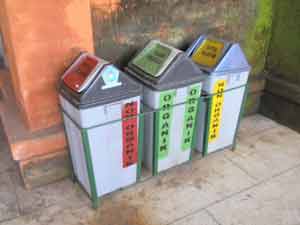 私がやっぱりバリが好きなのは、ただのアジアのリゾートっていうだけじゃない、独自の文化で色豊かな島だからだと思うんですけど、でもどうしても、ここの人たちのゴミぽい捨てな部分はなれないし、何とかしてくれと思う。トローリングに行ったら、セレモニーのあとのちょっとやそっとではない量のお供えものとかが浮島のように波にういてたことがあって、まぁお供えものは自然に帰るものだからいいのかなとも考えなおしたけど、やっぱりそれといっしょにアクアのボトルやらビニール袋やらもいっぱい浮かんでいて、がっかりしたことがある。な~んて言っちゃったけど、私も、じゃあ環境のことをちゃんと考えてごみを捨ててるかっていうと、反省する部分はいっぱいで、バリ人のことをとやかく言えたもんじゃないんだけど。でもやっぱり意識って変っていくんだなというか、変えようという動きが彼らの中にあるんだなっていうところが見えてきて、うれしくなった。デンパサールの市場でみかけた、分別ゴミ箱。ちゃんとボトルとか紙製のものを別々にいれるようになっていた。多分こういうのが、街の中に普通にあるようになる日もすぐだろうな・・・と、思いながら近くの川を見ると、何年も前に比べたら、比べようもないくらいきれいになっていた。 なので、バリ人化したゴミ分別に対する私の意識もきちんと変えていかなくてはと決意したのでした。 BALI BAGUS ONLINE ↓ご協力お願いします↓