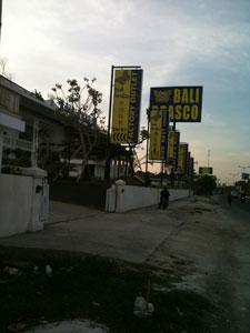 場所は空港方面からサンセットロードをまっすぐきて、1個目の信号をすぎた左側。「BALI BRASCO」と書かれた黄色の看板が目印。
