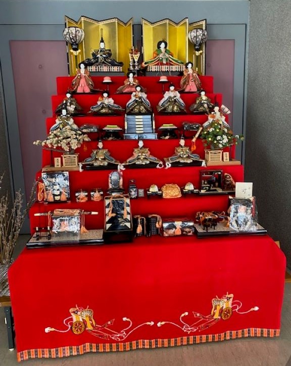 武下さんから梅の花の絵ハガキが届きました。とても細かく描写されていますね。他にもペコちゃんのタケノコ掘りの写真と私達夫婦が退院して、お正月を自宅で迎えられた写真も同封されていました。いつもご親切に感謝しています。さて、昨日の読み聞かせですが、私は支援学級の〇〇教室へ入りました。教壇の下で椅子に座って児童数人と向き合って座りました。すぐ目の前で同じ目の高さなので親近感を持ってくれて、よく発言してくれました。本は前もって読んであるので、文字を読まずに絵を見せながら要約して話しました。するとみんなが反応して口々に話をしてくれましたので、担任の先生がニコニコ笑って、私たちの様子をタブレットで撮ってくださいました。そして読み聞かせの時間が終わると「アットホームな雰囲気でとっても楽しそうでした」とおっしゃいました。そしてみんなが「ありがとうございました」と言ってくれたので私もとっても嬉しかったです。我が家のお雛様です。