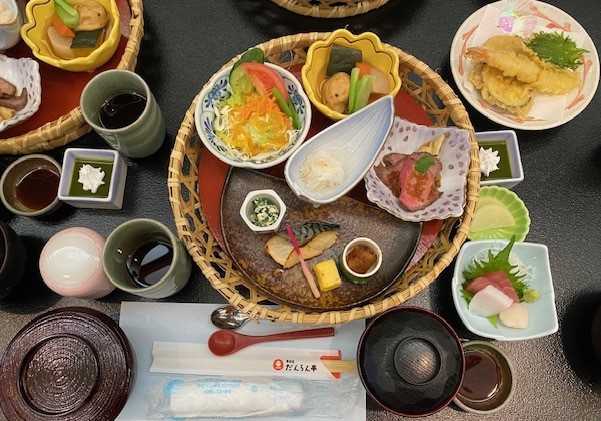今朝は雪が降っています。お隣の黒い建物を背に雪降りがわかりますか?空は暗く、雪が舞い降りてきますので今日のダンスレッスンはやめることにします。12月に2週間入院したので12月のクリスマスパーティーは以前からエントリーしてあったので、すべてドタキャンになり本当に残念な思いをしました。12/27に退院してきて年末年始は自宅で過ごせましたが、新年早々夜中に転倒して打撲、肋骨骨折ではないもののひびが入ったのか筋肉痛なのかわかりませんが、まだ完全には痛みがとれません。それでも両脚だけでなく身体の筋肉が落ちてしまったので1月下旬からダンス教室で靴を履いて歩く練習から始めました。その後ベーシックの練習をやって、今はやっとルンバの振り付けを付けてもらっています。すると2週間ほど前のことですが、名古屋のダンスの先生から4月にダンスパーティーを開催するので私の身体の具合はどうなのかと教室に連絡があったそうです。まだ踊り始めたばかりで1曲通して踊るのは無理ですよと答えるとミニデモでいいので踊ってもらえないかと言われたそうです。4月中旬までに1分半完璧に踊れるようにならないといけません。それで急にあわただしくなってきました。残りあと1か月半しかありませんが、何とか人前で踊れるように練習あるのみです。さて、昨日の続きをやり始めました。相方は花編みの片面をせっせと作り続け切ってあったクラフトテープをすべて終了しました。そして私も残りの片面をせっせと折り曲げて間違わずに花編みができるようになりました。それで夕べはご苦労様でしたという事で夕食にうな丼を食べに出かけました。相方にはこちらを私はこちらです。串は1本ずつお疲れさまでした。PS) 今日は午後3時から3時半の予約で先日入院していた病院の主治医の診察があります。1週間前に採血した結果と腹部CT検査をした結果が出ているので、その結果次第でこれで終了となるかそれともまだ治療が必要となるかの結論が出ます。でも坂道を上がって行けるかしら?病院は山の上にあります。先日大雪の日に相方は自宅から50分かけて歩いていきましたが、私はどうしようかと迷っています。