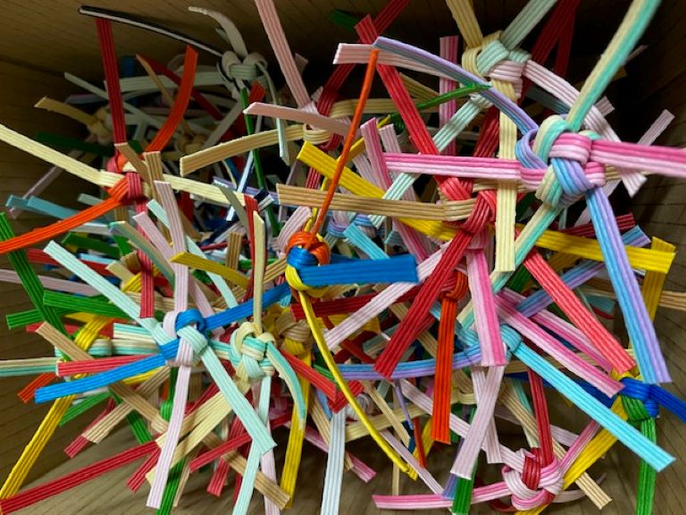 昨日、日曜日の午後、やっと確定申告を完成させてE-Taxで送信しました。3度目の正直ではなく4度目にやっと完了。送信するばかりになって、変な所(×)を押してしまいやり直しを繰り返し、「全くもう」と言いながらやっと送信できました。といってもやったのは私ではなく相方ですが。終るとホッとしますね。私のを先にやってもらったので、今度は相方は自分のをやらないといけませんけどね。「全くもう」とため息をついているのを横目に私は完成した花編みに鈴を通していました。一昨日のにじいろ会の合同親睦会には当支部から4名参加しましたが、車に乗せて行ってもらったメンバーさんに完成品を約240個持ち帰ってもらいました。昨日そのうちの100個を知り合いのお店に置かせてもらえたと連絡がありました。これで在庫が全くなくなってしまったので、出来るだけ早く完成させようと毎日せっせと手を動かしています。昨日は節分でしたので、スーパーで恵方巻を買ってきて食べました。最近は豆まきをする家もなく、静かな夜でした。