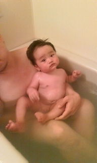 夜は大好きなパパにお風呂で歌を歌ってもらってゆったり.