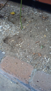 今朝大きな足跡が花壇に二つついているのに気付きました。