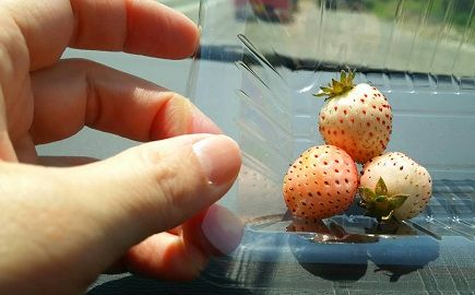 白いイチゴも摘んで