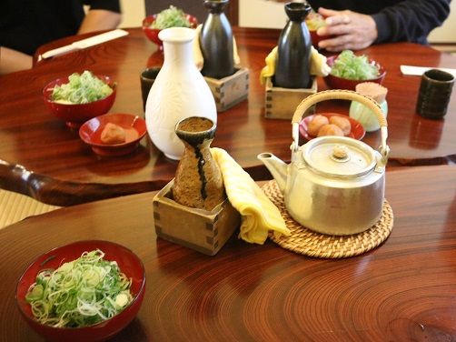 出し汁の入った徳利には火傷防止のタオルを巻きます。