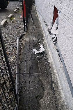 ぽっかり穴が開いてしまった車庫とフェンス。