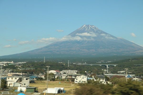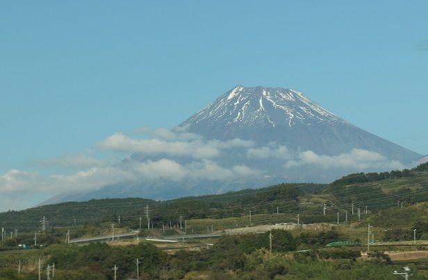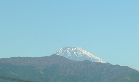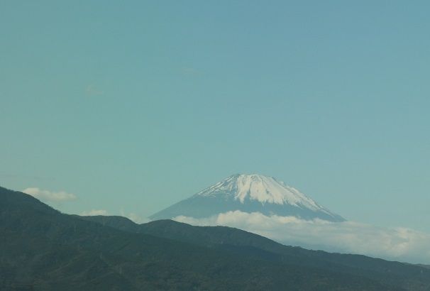 行きは霞んで見えなかった富士山が