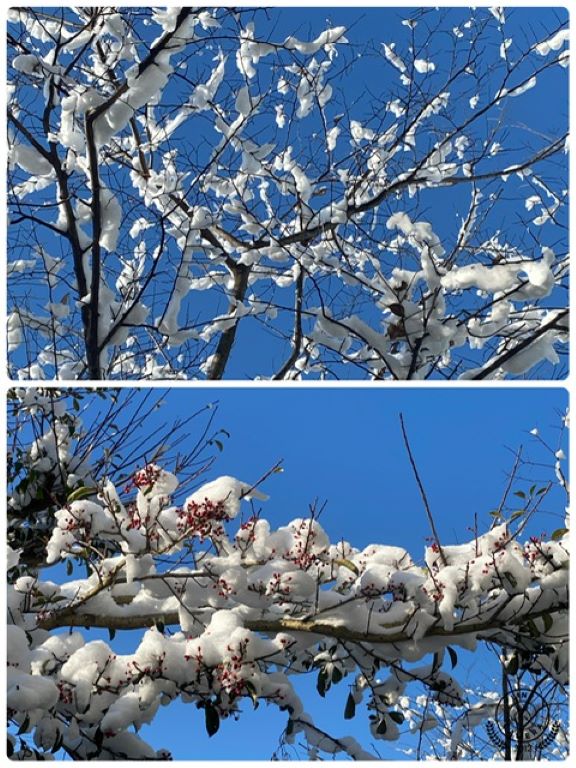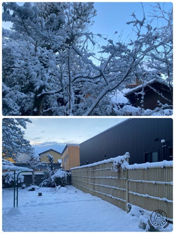 庭の枯れ木にも雪の花が咲きました。