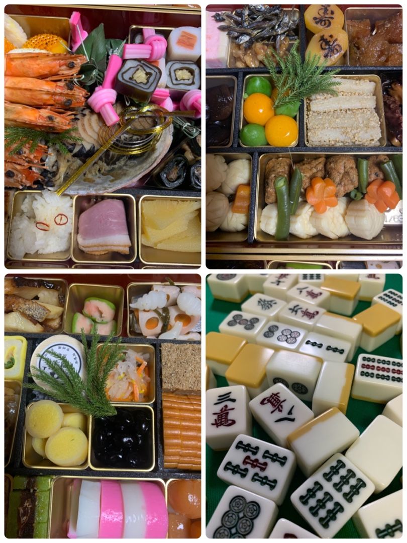 昭和、平成、令和…3つの時代をまたげて、(それなりに?)平穏に生きられてる日々。そういう日常が変わらない1年に、今年もなると良いな…。本年も、どうぞ宜しくお願い致します☆ ☆ ☆ ☆ ☆【義実家】10年ぶりぐらいに麻雀参戦。2泊させてもらったけど、やることあまりないし、かといって、ゴロゴロ・グテ〜っと、しきれないし。でも、麻雀というゲームのおかげで、時間も、あっという間に過ぎたよ。ビバ マージャン╰(*´︶`*)╯☆ ☆ ☆ ☆ ☆【実家】やっぱり、母の料理が一番!当たり前のように食べてたあの頃、幸せだったな。姉が、ここ数年、下鴨茶寮のお節持参してくれる。今年のが1番美味しかった気がする。味の濃さが、昨年と違かったのかな。←色レボ出来ない私(-.-)☆ ☆ ☆ ☆ ☆9連休も、残り1日…目覚ましかけないで良い日、ラストだよ(´༎ຶོρ༎ຶོ`)ラストだからこそ、引き続きゴロゴロするか?仕事始めに備えてシャキッとするか?目が覚めたら、そのとき次第だな( ^ω^ )