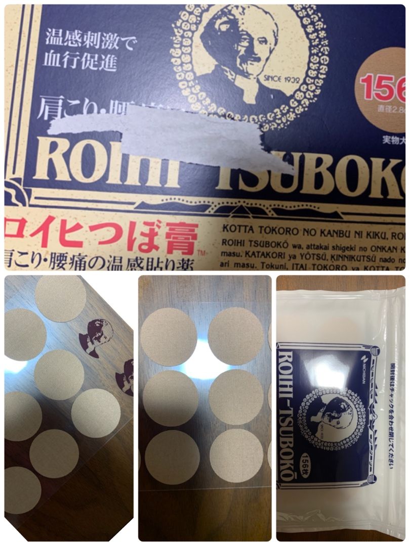 イタた…仕事中、肩が張って思わず声に出してしまった。同僚が、サッと差し出してくれた。ロイヒつぼ膏 なるシップ。500円玉ぐらいのサイズのシールみたいなのに、なんだか良い感じだったので、早速、薬局で購入したよ。パッケージが、レトロ。156枚入り 1000円弱だったかな。シールはがすと、おじさんの顔がシートに、描かれてた。エコバッグのおまけつきだった。紙幣になりそうな歴史上の人物のようなキャラクターなのに、まさかのサンリオとコラボ(=^▽^)σレジ袋有料のお店がポピュラーになってきてるから、早速 このバッグ活用しよ〜っと♪
