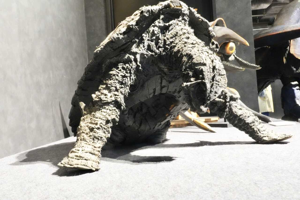 「トト」の展示用スーツや、登場する敵怪獣ジーダスやギャオスのオリジナルヘッドが展示されていました。