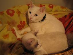 めずらしく2人でカゴに入ってました。しばらくはイイ感じでしたが、この後そらがみゅうにちょっかい出し始めて、みゅうはカゴから出てしまいました・・・いつになったら2人仲良く寝てくれるんだろ。。。