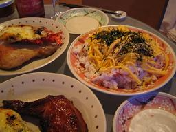 クリスマスといってもどこに出かける予定もなく・・・夕飯はクリスマスっぽくしてみました。注文していた伊勢海老といくらが届いたので、伊勢海老はマヨネーズ焼きにして、いくらはちらし寿司にのせました。(私はいくらが食べれないのでダーリン専用)あとは、ローストチキンとショートケーキを買ってきました。伊勢海老旨かった~♪