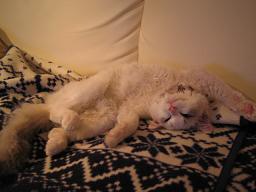 バンザイして寝てるそら。気持ち良さそう・・・よく半目あけて寝てます。