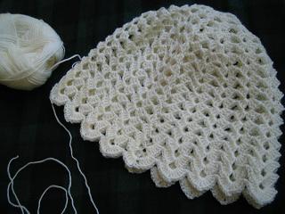 『女の子の手編みのぼうし』にのっていた帽子。何回か編み直してやっと完成。本ではお花のコサージュがついてますが省略します。というのも、かぶったとき頭をケガしたときかぶるネットのように見えてしまって・・・。白だからいけないのかなぁーー。コサージュつければまた変わるかな?