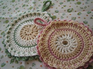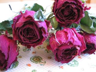 何週間か前、値下がりしてたバラの切花を買ってドライフラワーにしました。中までカリカリになって出来上がり~!濃いピンクがキレイに残りましたよ♪今までやったドライローズの中で一番キレイかもしれません。薄い色のバラは茶色く、赤いバラは黒くなります。六角形のポットマット。最終段のバック編みが疲れたぁ・・・。